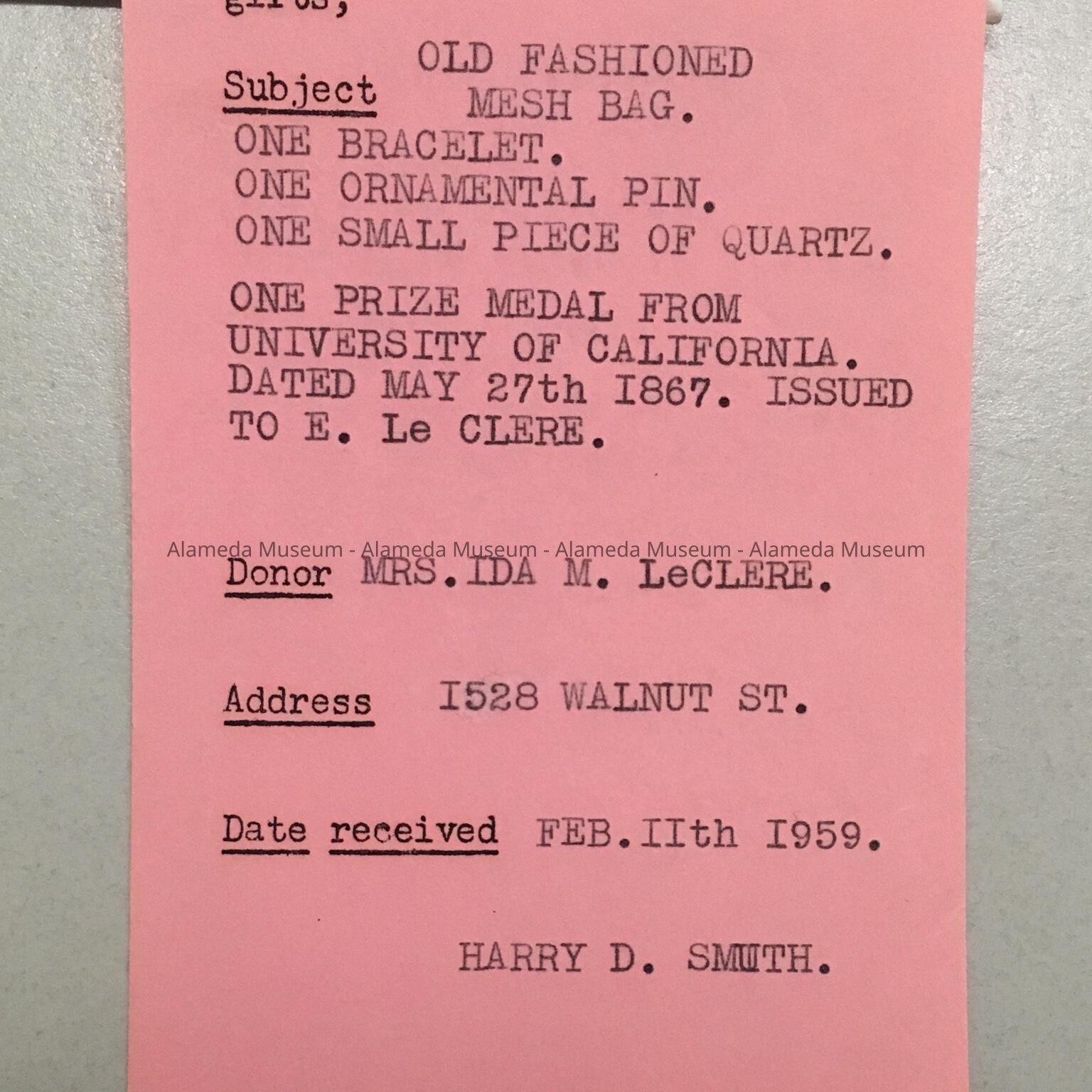 Acquired from: Ida M. LeClerc