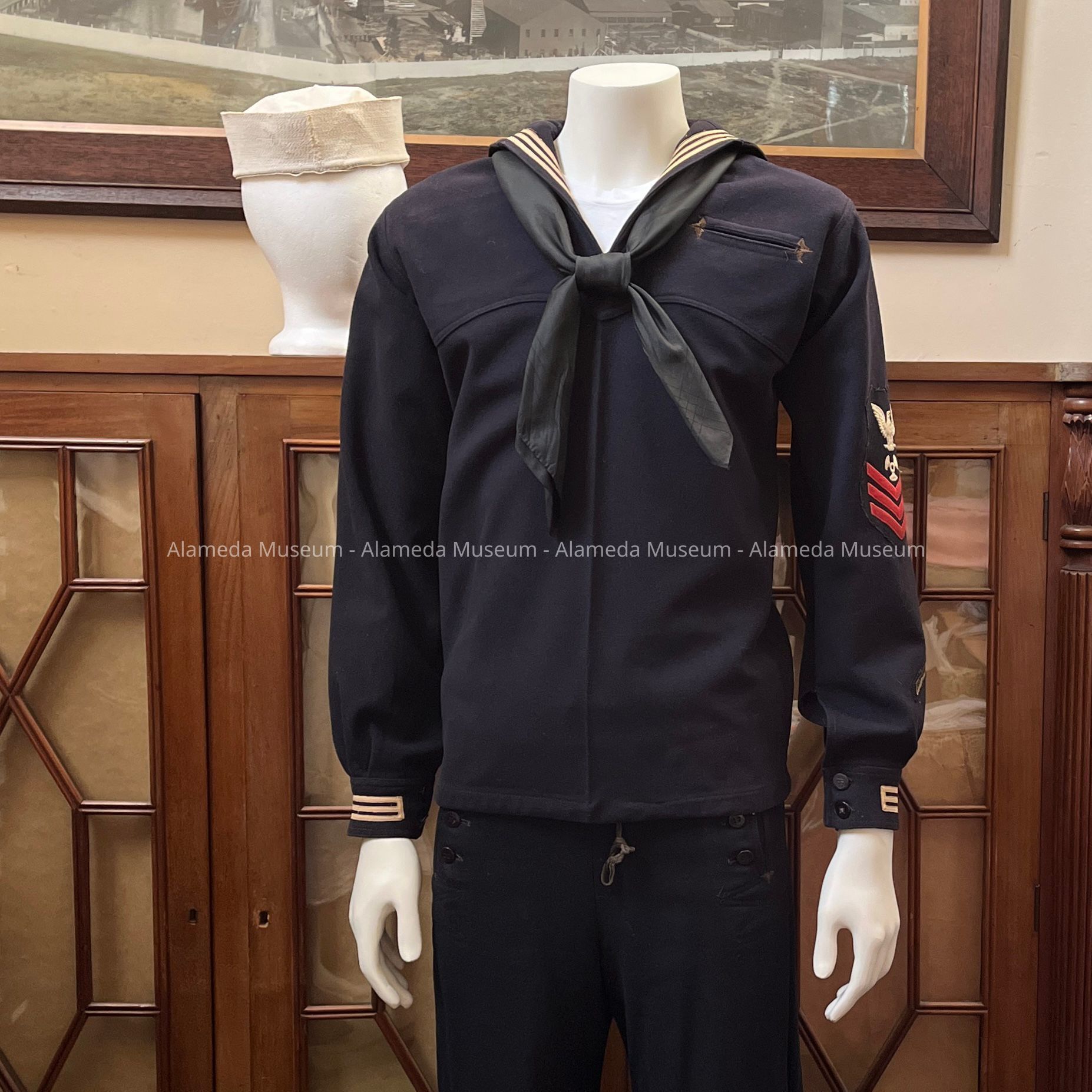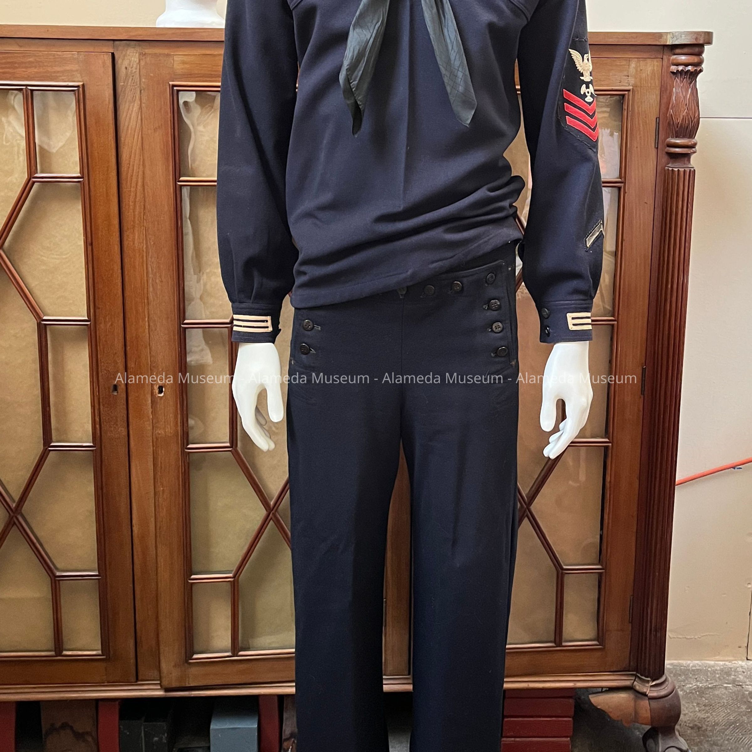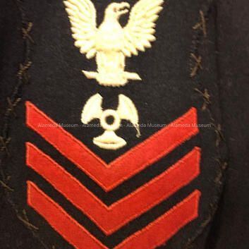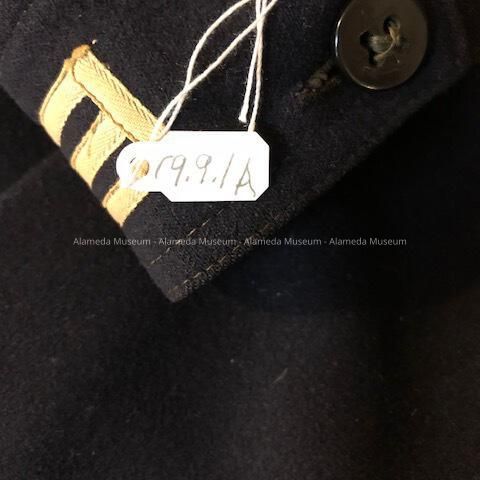 History of Object: A U.S. Navy uniform belonging to Ervin Wolslegel, a long time resident of Alameda. He was born in 1890 in Buckley, WA. He resided in Alameda from 1940 until his death in 1974. He was an employee of the U.S. Naval Air Station in Alameda.