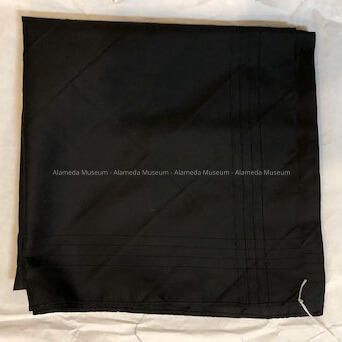 Description: (A) U.S. Navy pull-over jackets, (B) matching pants, (C) scarf, (D) cap. This enlisted man's uniform is of black wool with white colored ribbing on the sleeves and collar. Size is unknown. The cap is white. (E) a formal naval tie in black colored silk.