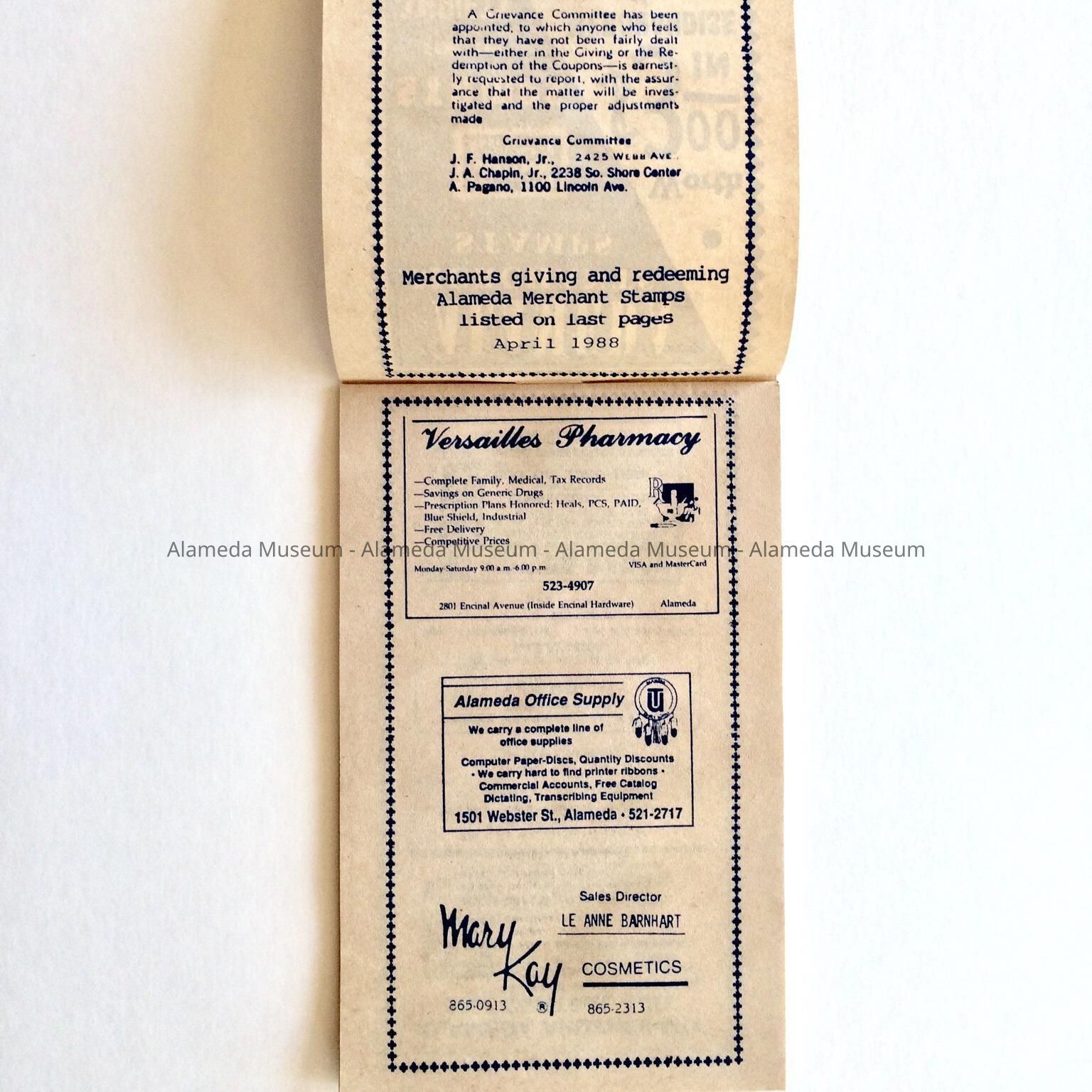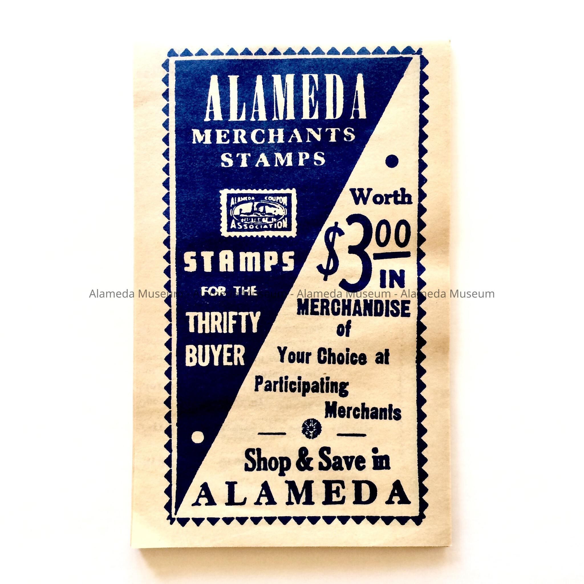 History of Object: BOOKLET USED FOR PASTING IN ALAMEDA MERCHANT STAMPS. UNUSED.