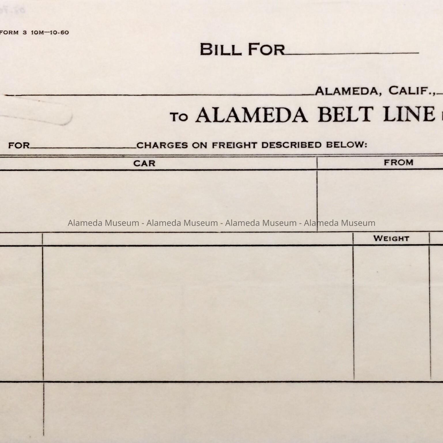 Unused receipt form from the Alameda Belt Line, prior 1997Entry/Object ID