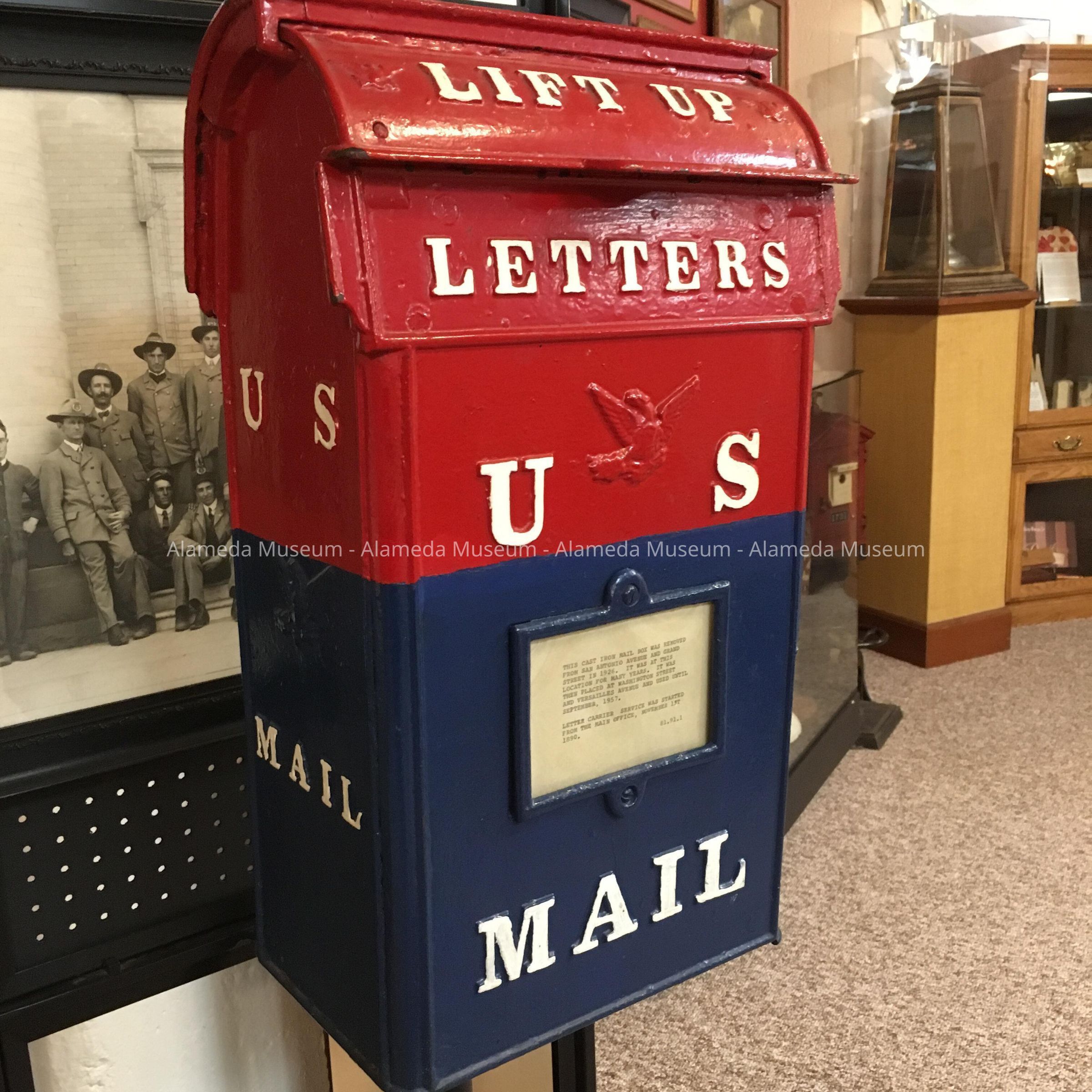 History of Object: This iron mail box was removed from San Antonio Avenue and Grand Street in 1926. It was at this location for many years. It was then placed at Washington Street and Versailles Avenue and used until September 1957. Letter carrier service was started from the main office November 1, 1890.