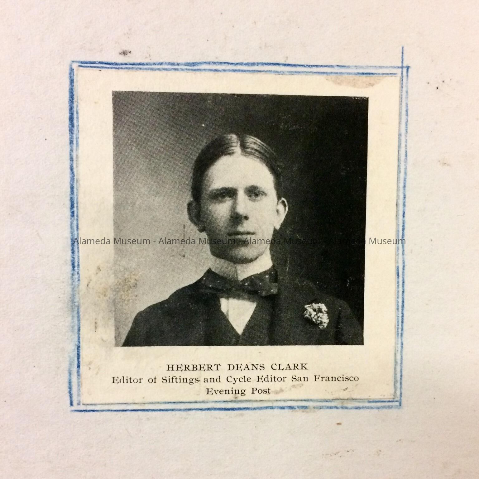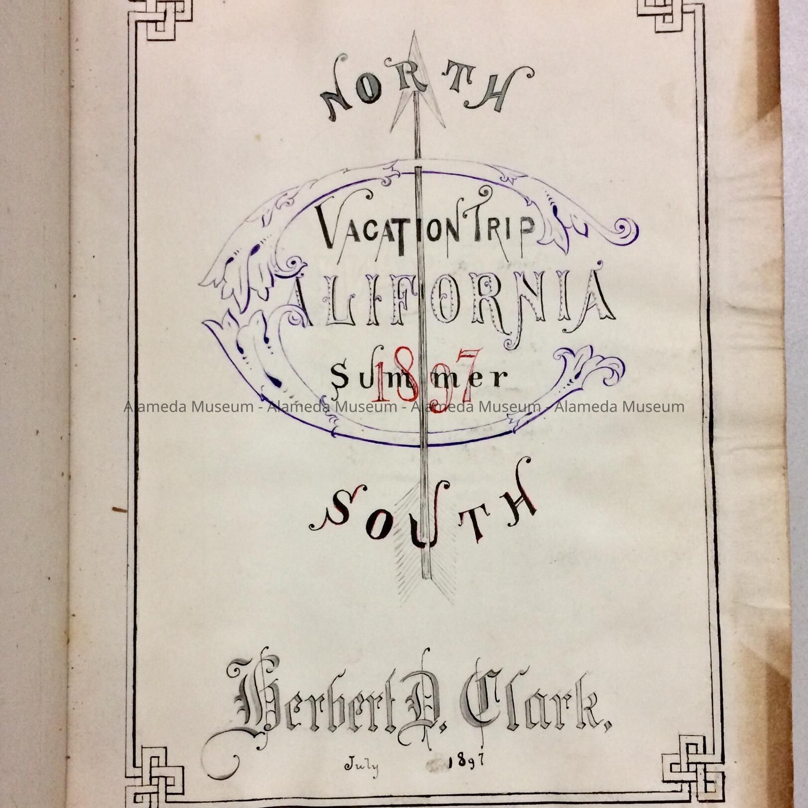 HISTORY OF OBJECT: BOOK CREATED BY HERBERT D CLARK, WHO WAS AT THAT TIME EDITOR OF "SIFTINGS AND CYCLE," SAN FRANCISCO EVENING POST. JOURNAL CONTAINS AN ACCOUNT OF HIS TRIP TO VARIOUS CITIES THROUGHOUT SOUTHERN CALIFORNIA. TRIP ACCOUNTS BEGIN IN ALAMEDA ON AUGUST 1, 1897. THE CLARK FAMILY WERE EARLY RESIDENTS OF ALAMEDA.