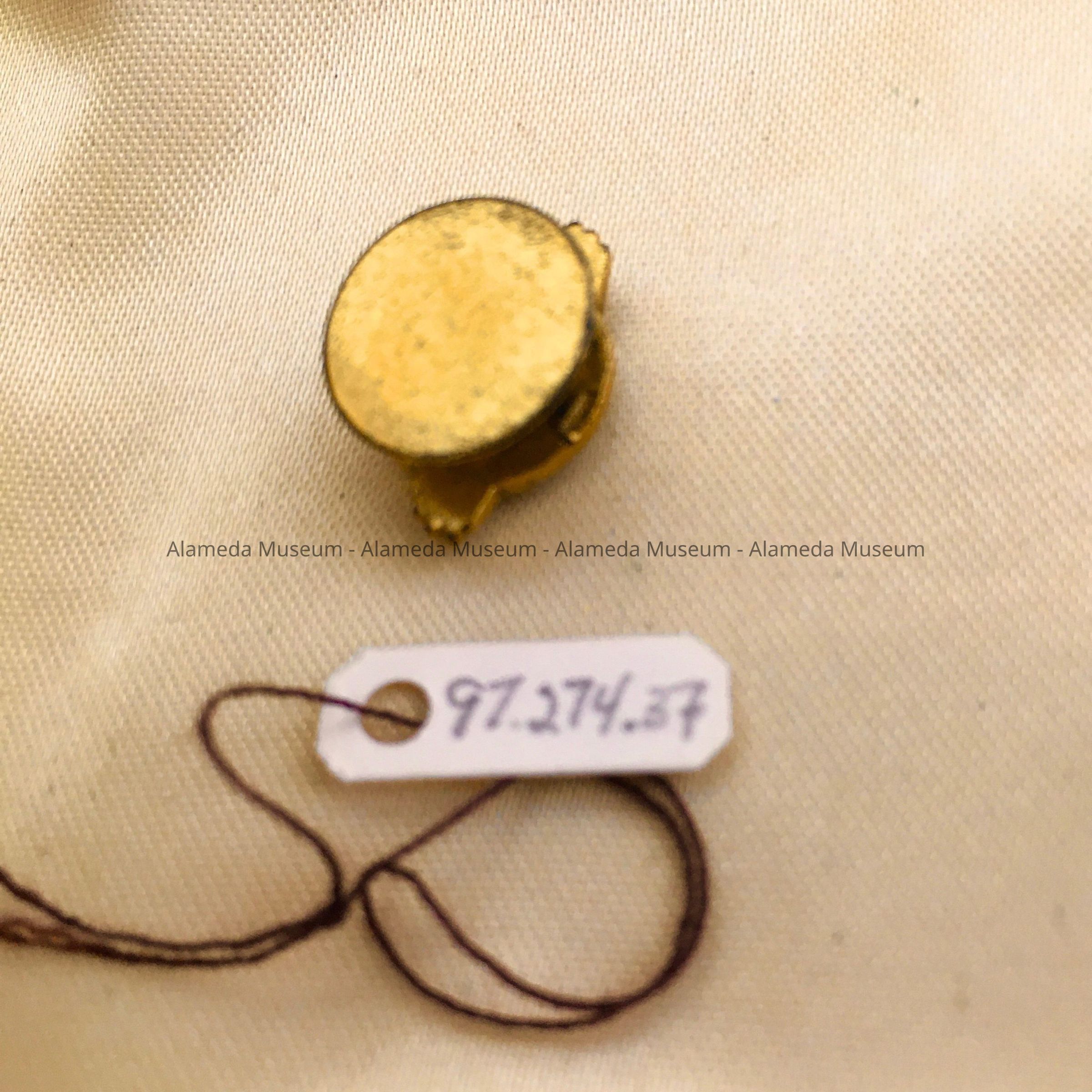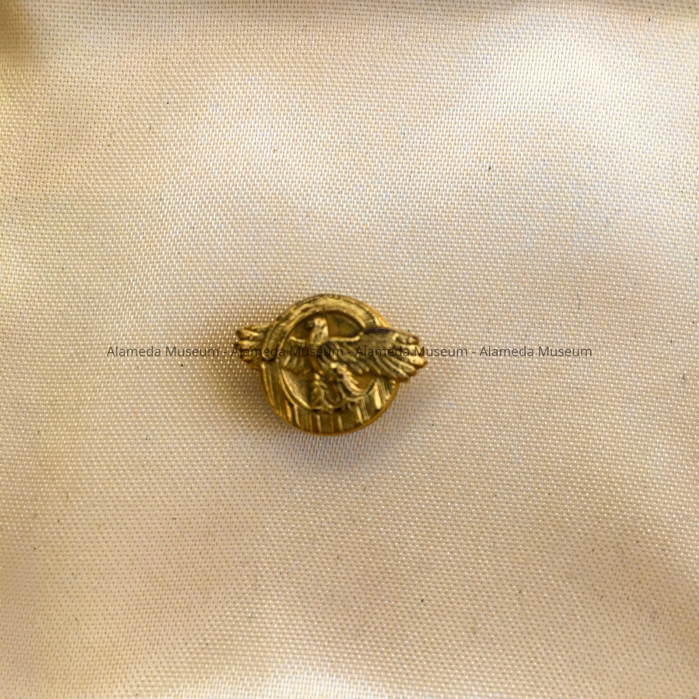 VETERAN'S LAPEL PIN WORN BY FRED W KRUEGER, ALAMEDA RESIDENT, WHO SERVED IN THE UNITED STATES ARMY DURING WW-II.
