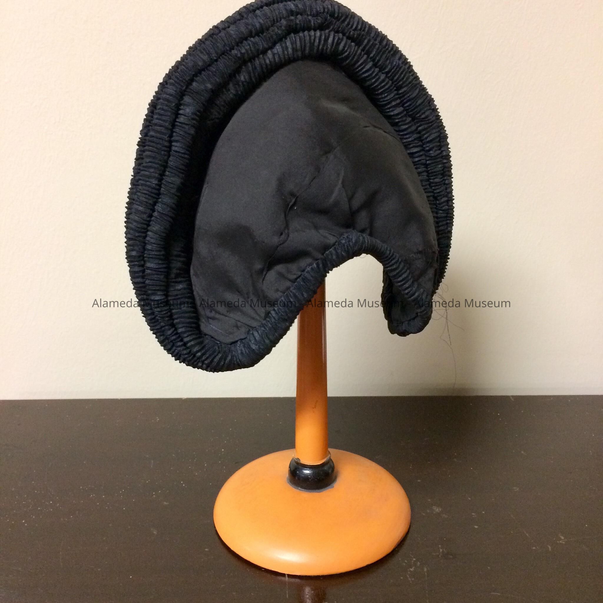 Victorian style mourning hat with brim of silk with ruffles, c. 1880sEntry/Object ID