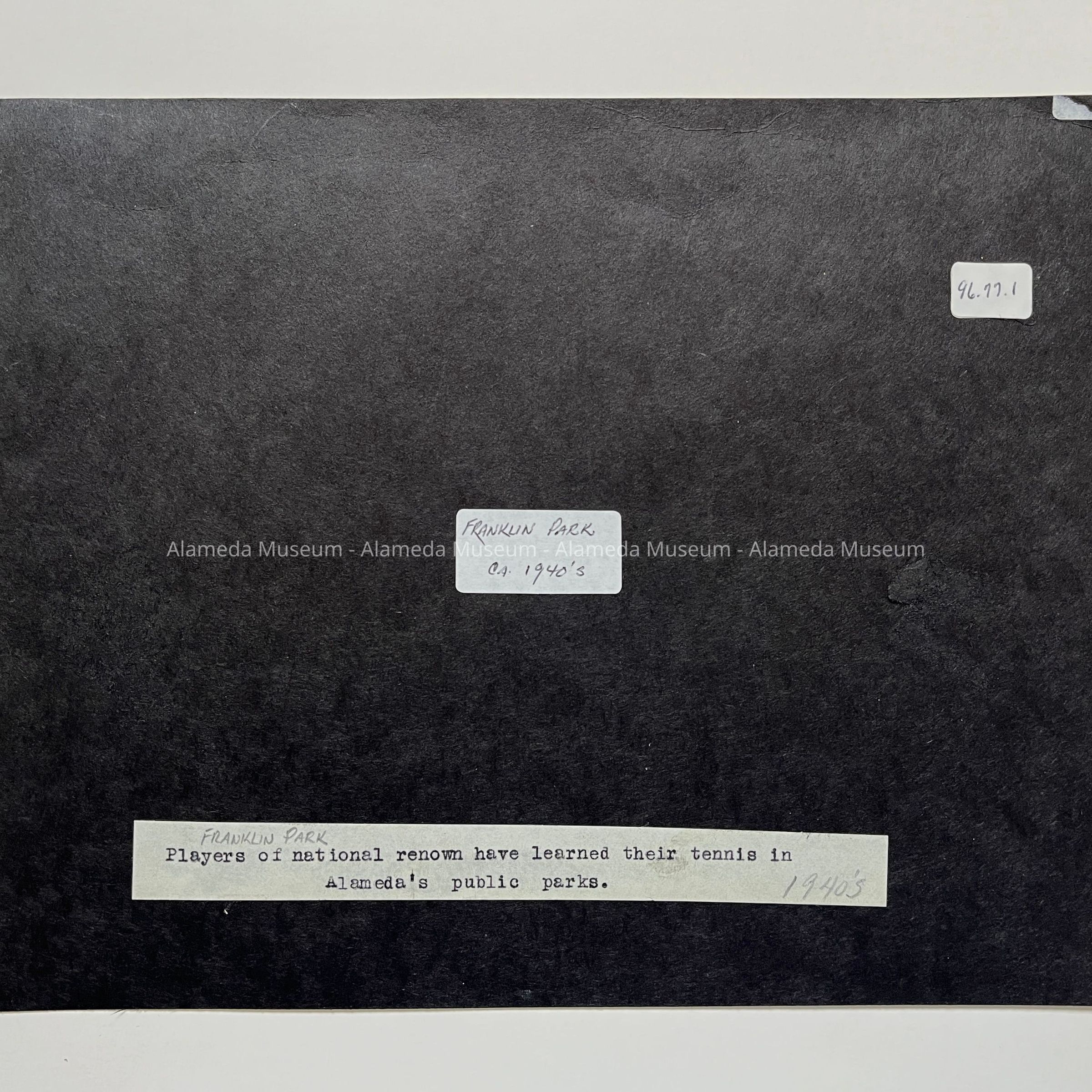 History of Object: View of Franklin Park tennis courts, ca. 1940's.