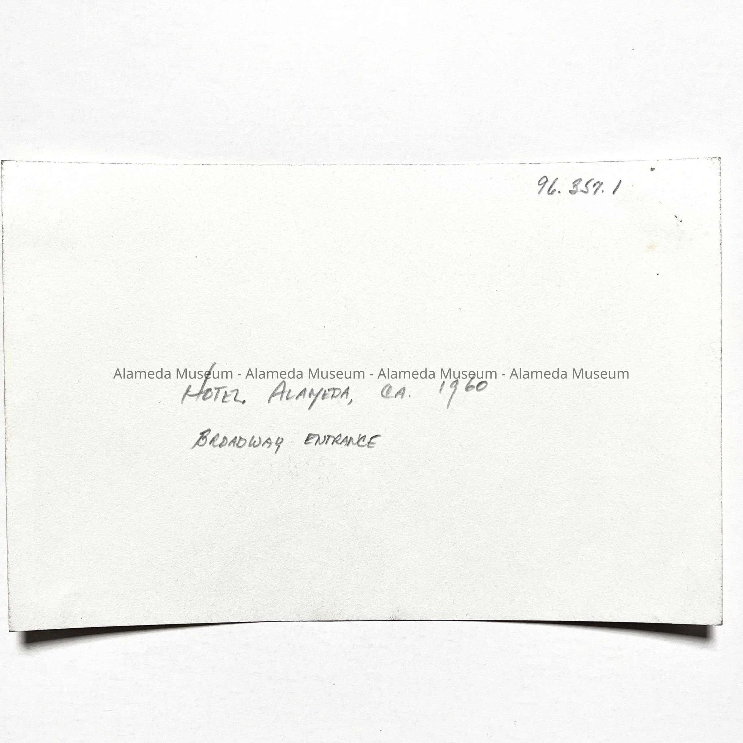 View of the Broadway entrance to the Alameda Hotel, c. 1960Entry/Object ID