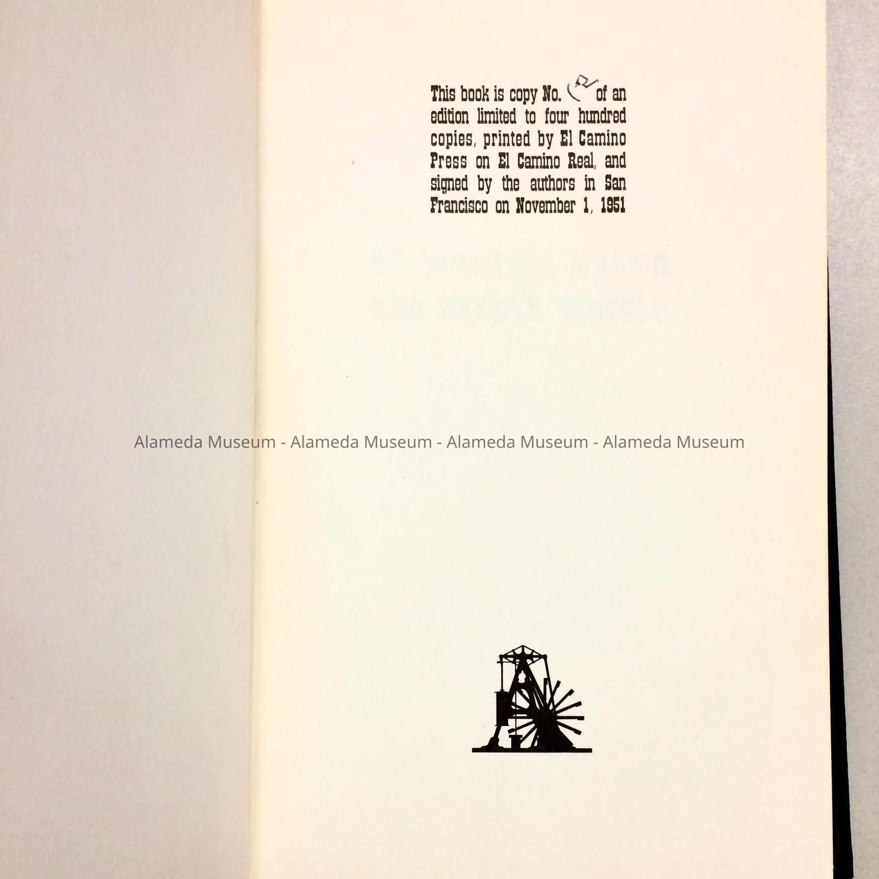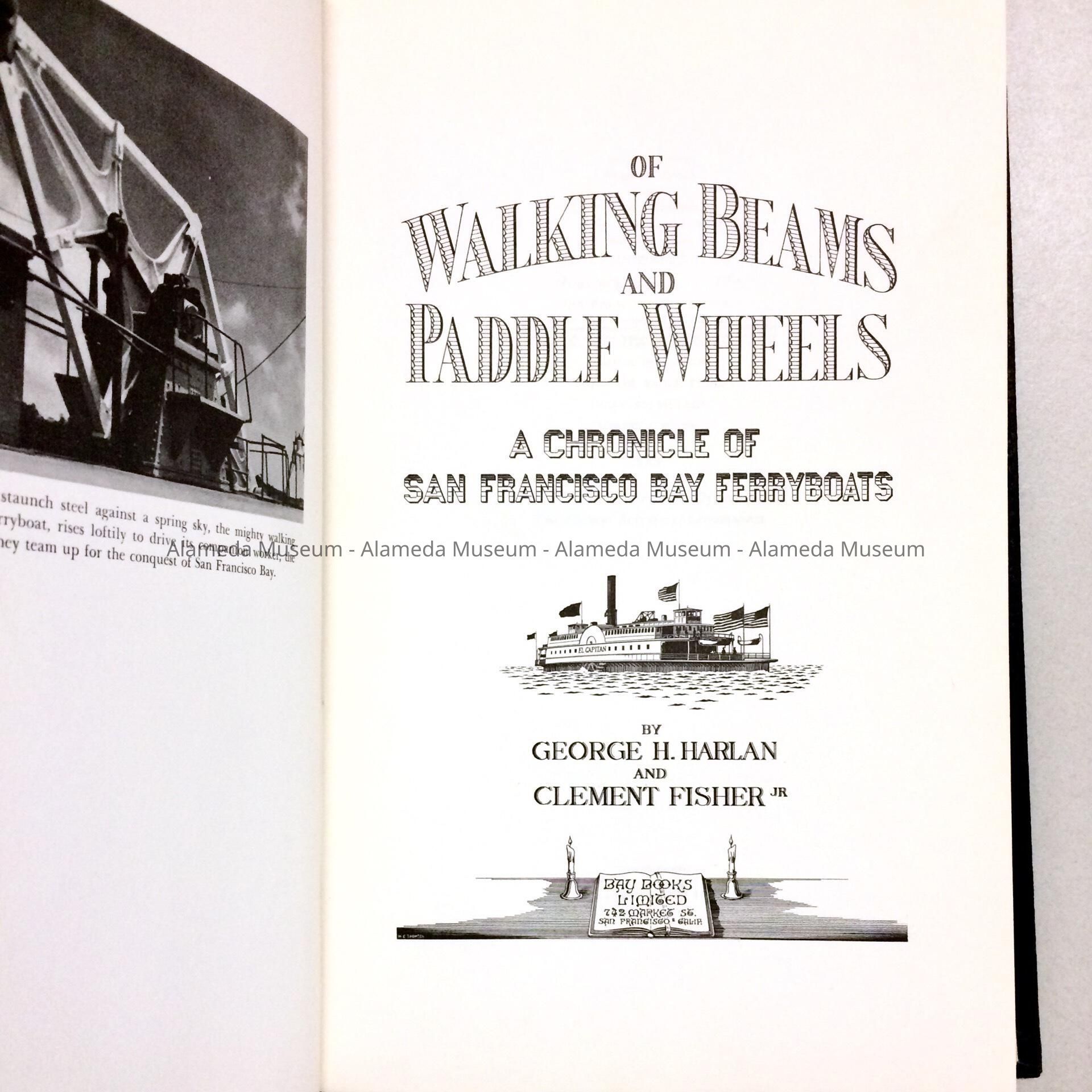 DESCRIPTION: A HARD-BOUND BOOK WITH IMITATION LEATHER COVER IN DARK BLUE COLOR. SPINE STATES IN GOLD-INCISED LETTERING, "WALKING BEAMS AND PADDLE WHEELS." THE BOOK WAS AUTHORED BY GEORGE H. HARLAN AND CLEMENT FISHER, BAY BOOKS, LTD., SAN FRANCISCO, 1951.