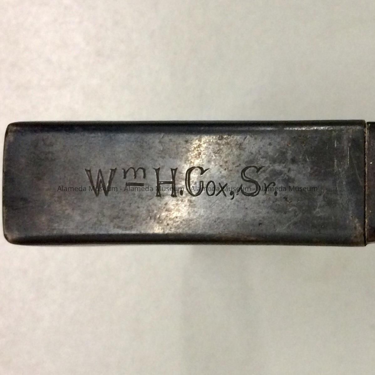 History of Object: Walking stick which belonged to Mr. William Cox, Sr., father-in-law of Adeline T. Cox. The Cox family were residents of Alameda as early as 1914.