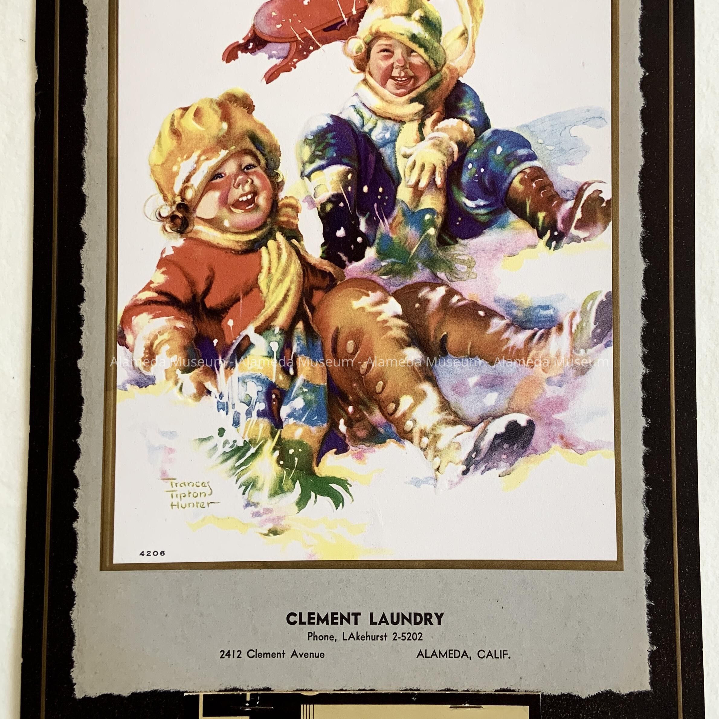 HISTORY OF OBJECT: A 1941 WALL CALENDAR ADVERTISING CLEMENT LAUNDRY, 2412 CLEMENT AVENUE, ALAMEDA, TELEPHONE: LA 25202. THE CALENDAR HAS NEVER BEEN USED.