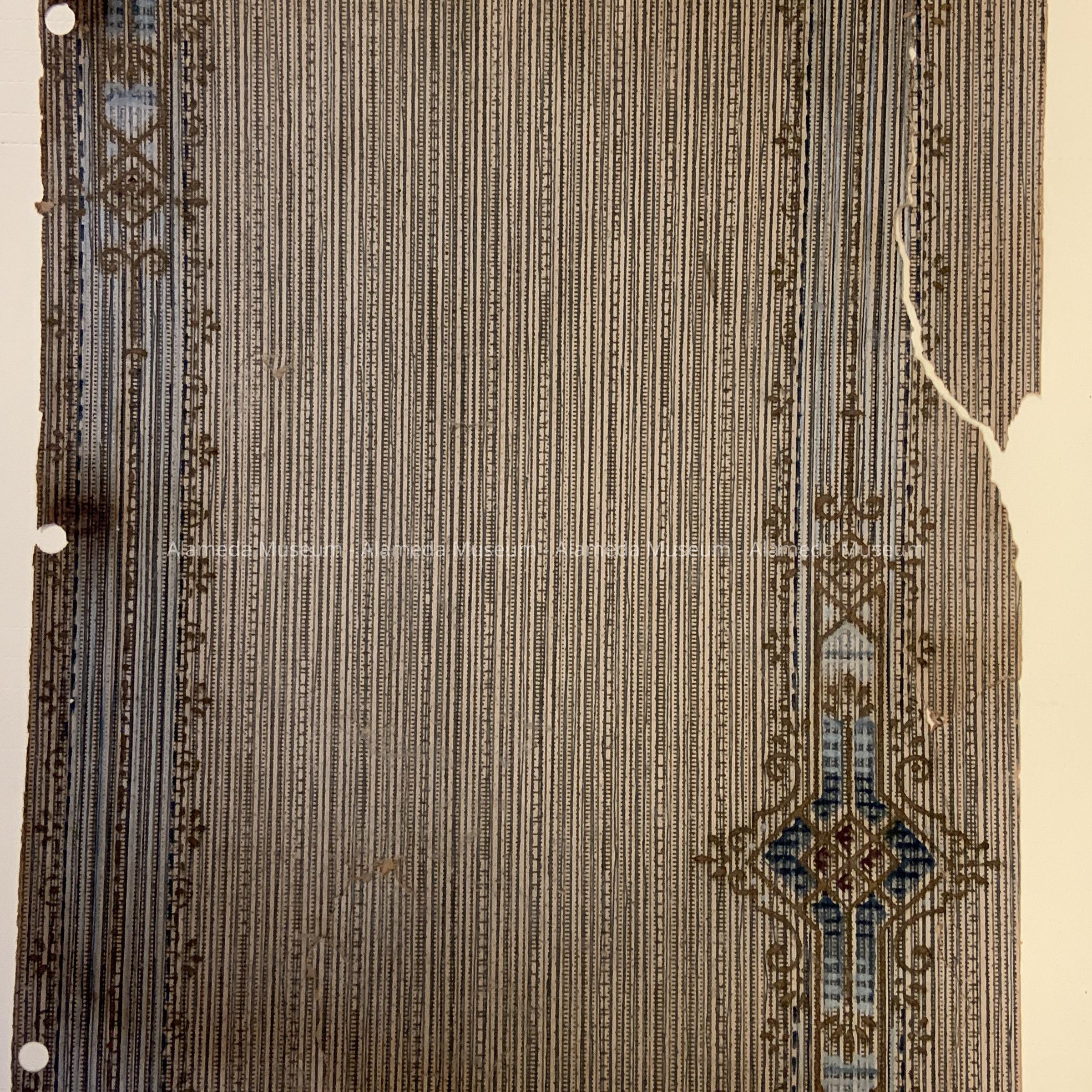 A SAMPLE OF WALLPAPER REMOVED FROM A ROOM AT 1012 GRAND STREET, ALAMEDA, CALIFORNIA; ERECTED IN 1881.