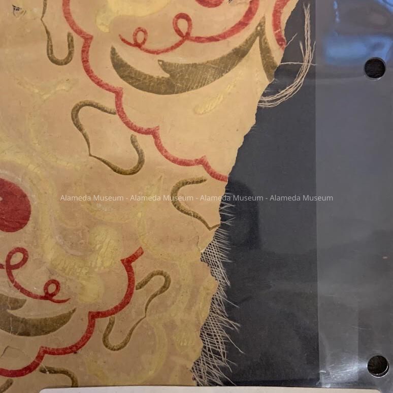 10/18/2021 MvL: typed label inside the plastic cover: "Wallpaper sample from 1548 Pacific Avenue (erected 1896-97)'.