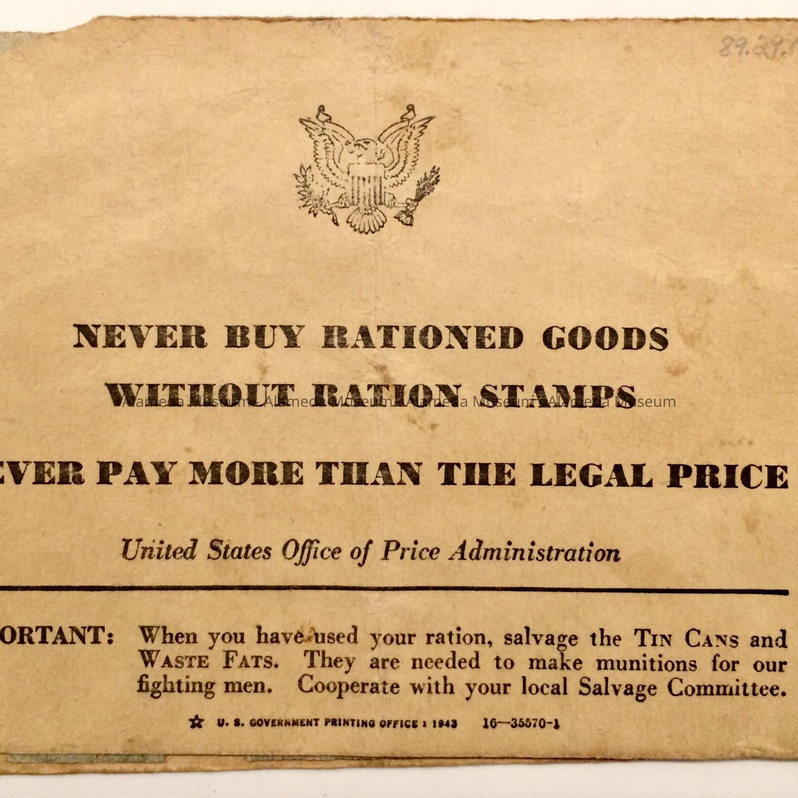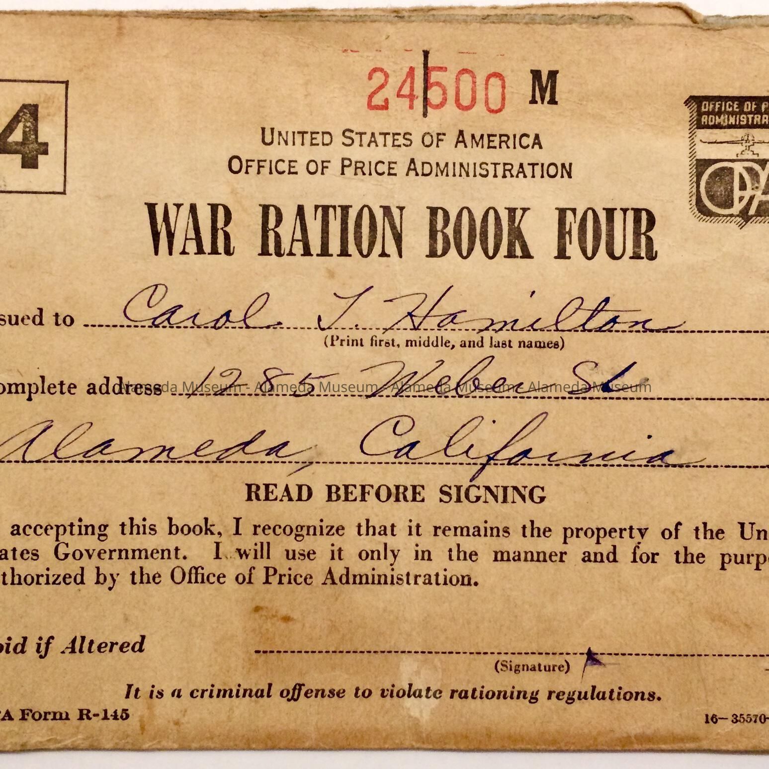 History of Object: War ration book issued to Carol Hamilton, 1285 Weber St., Alameda.