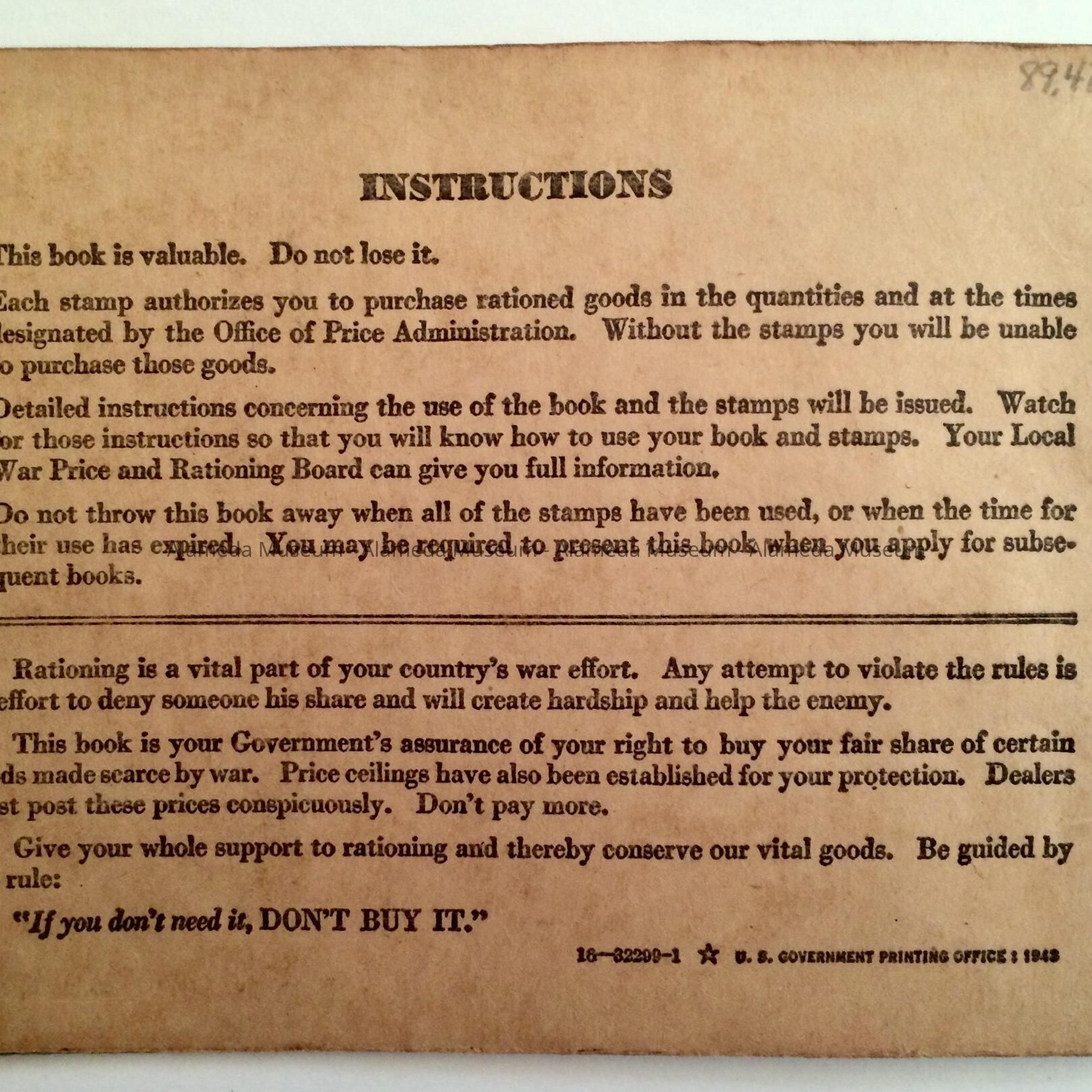 Description: Ration stamp book with cover caption "War Ration Book No. 3."