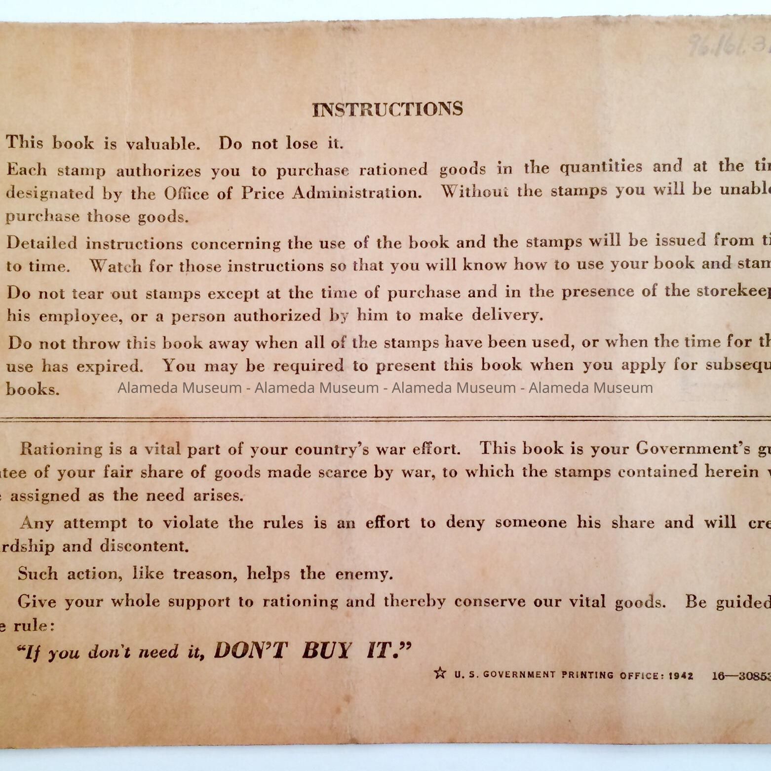 BOOK COVERLET, WITH BOLD-PRINTED CAPTION, "WAR RATION BOOK TWO." INFORMATION BLANKS FILLED OUT IN SCRIPT.