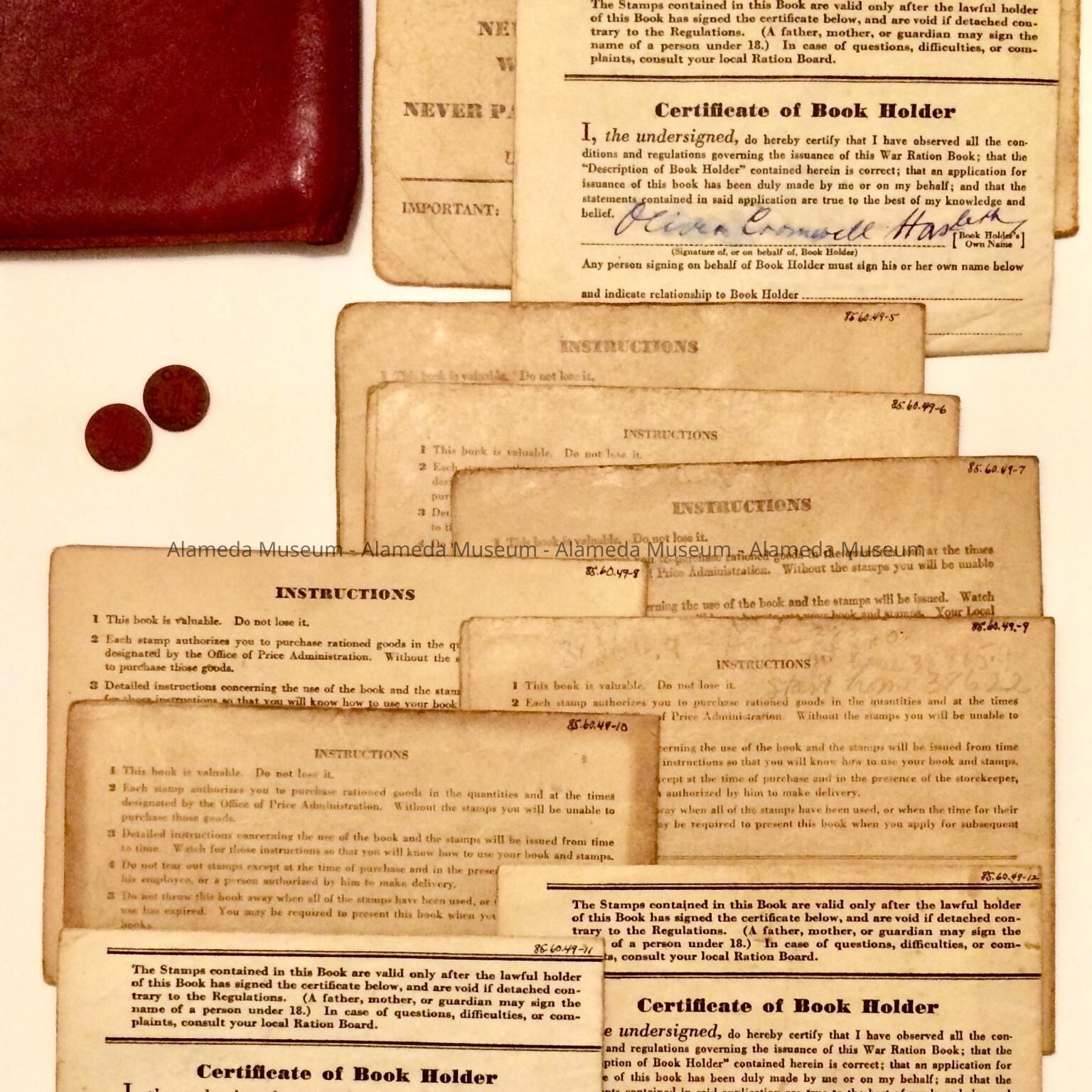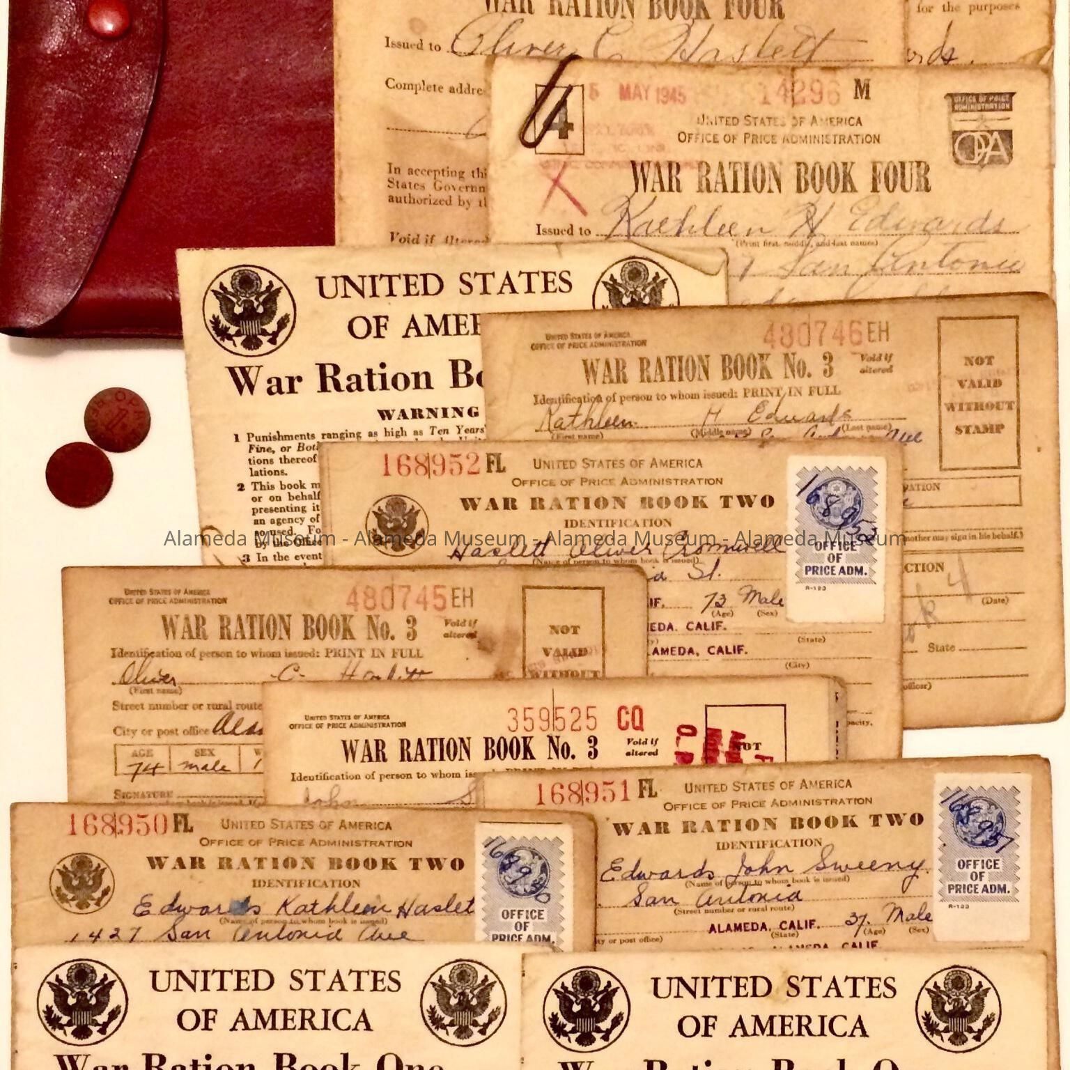 History of Object: War Ration Books of John S. & Kathleen H. Edwards & Oliver C. Haslett (her father) of 1427 San Antonio Avenue, Alameda, Calif.