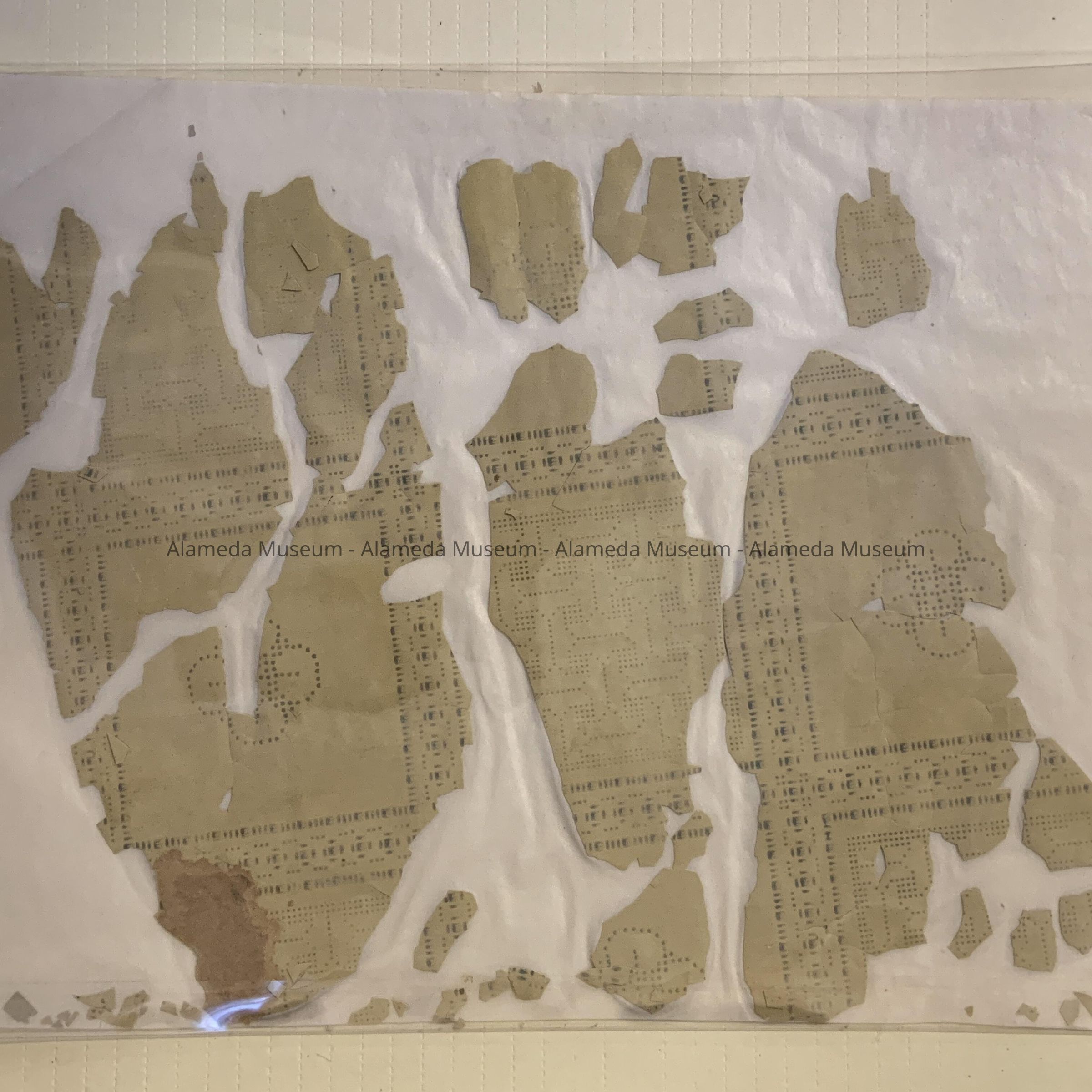 WALLPAPER USUALLY FOUND IN BATHROOMS AND KITCHENS. IN THIS PARTICULAR EXAMPLE, THE PIECE WAS RETRIEVED FROM 1012 GRAND STREET, ALAMEDA; ERECTED IN 1881.