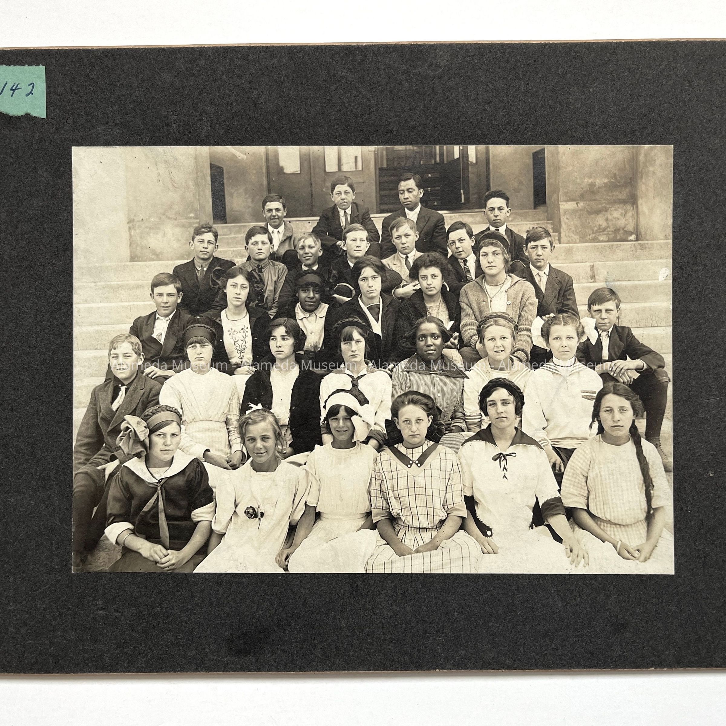 History of Object: Washington School class photo, grade and year unknown. A couple of the students are identified on the verso.