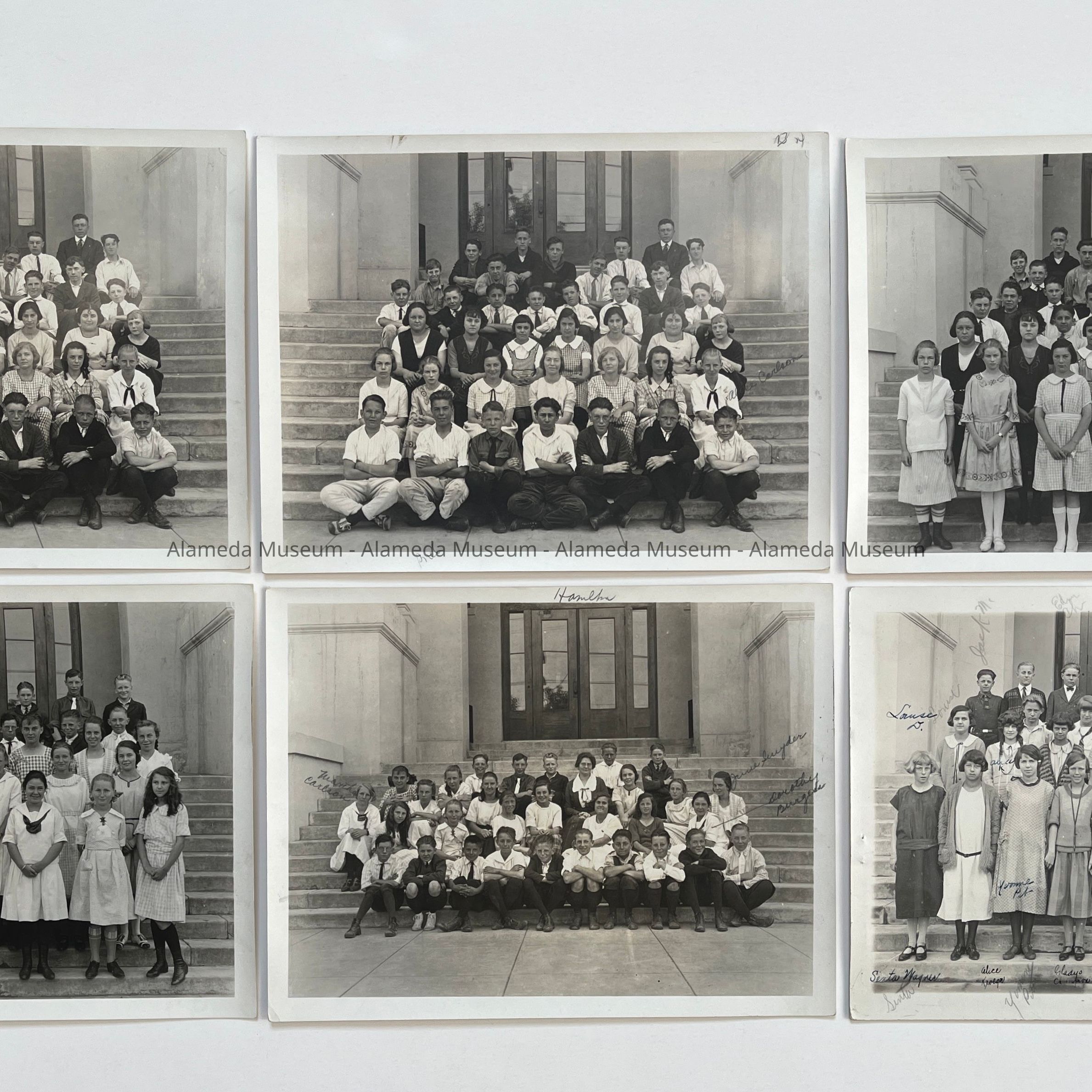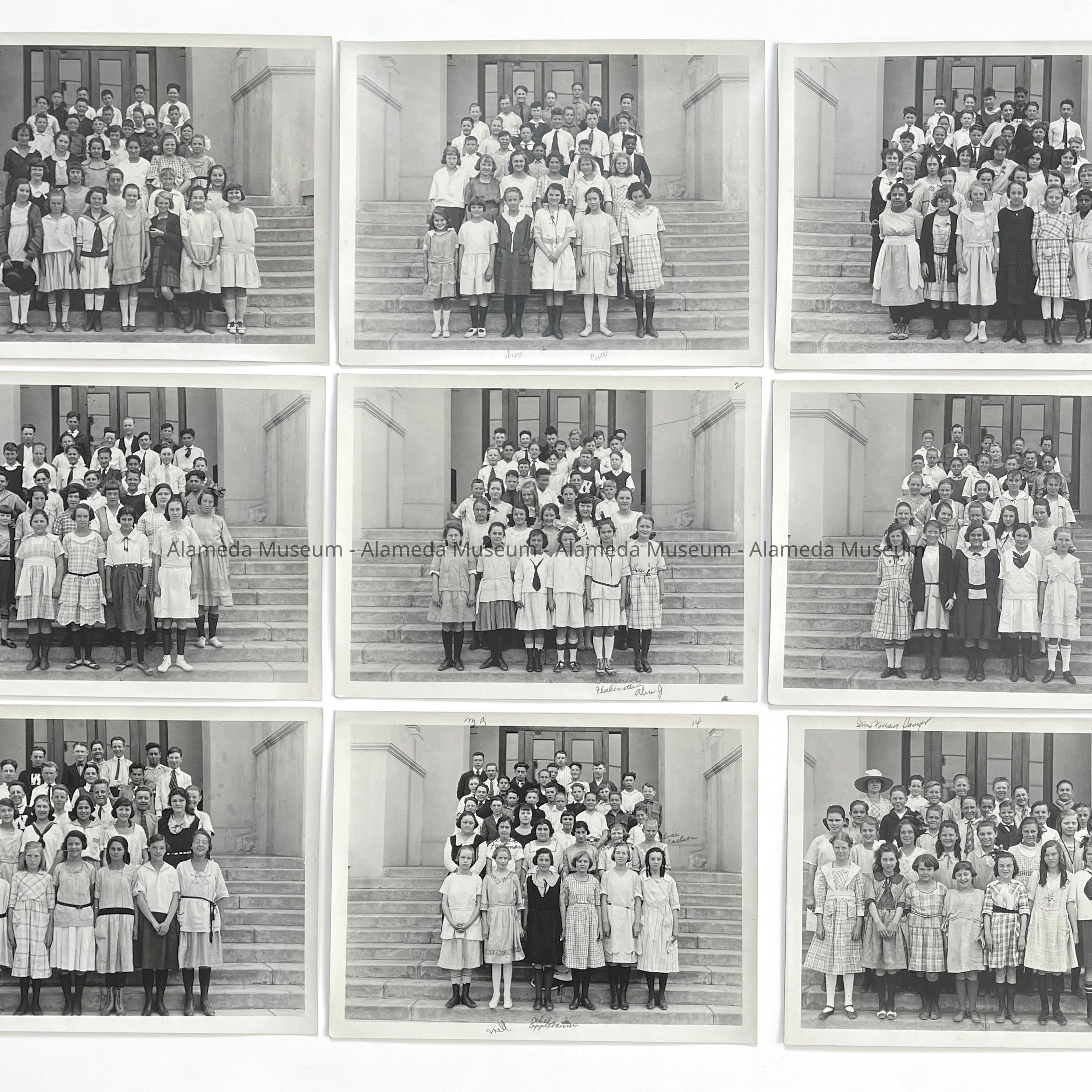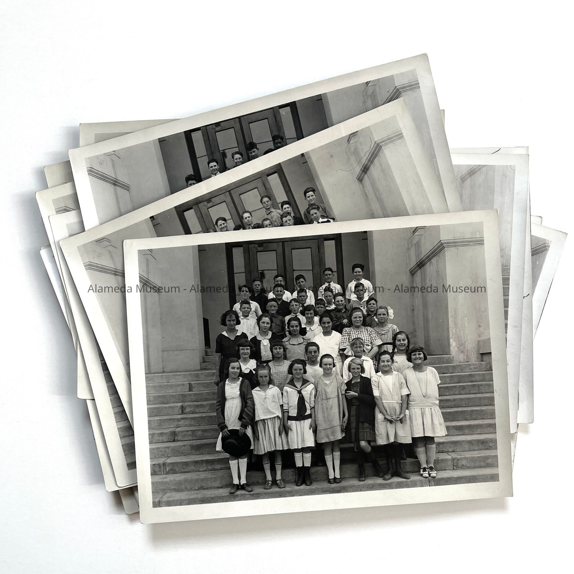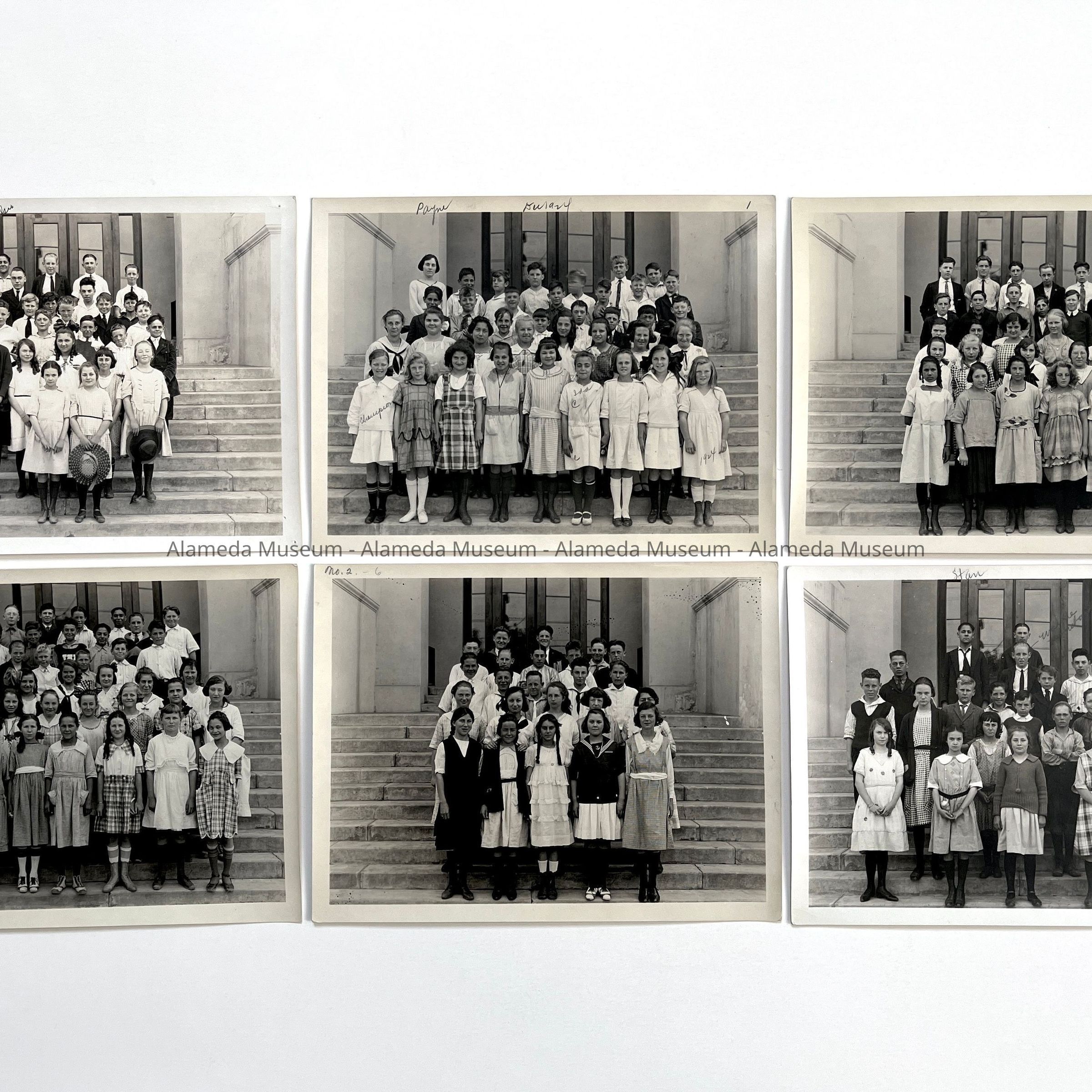 Description: Series of black/white semi-glossy photos, unmounted: Photographer: Ford E. Samuel (Photo Service Bureau), 1515 Clinton Ave., Alameda (per blue ink-stamped name on verso of all but image #u). Images are hand number in black ink on the verso (except none on u), ranging from #3 through #135. Ten of the images have identifying notiations written upon their face in black ink.