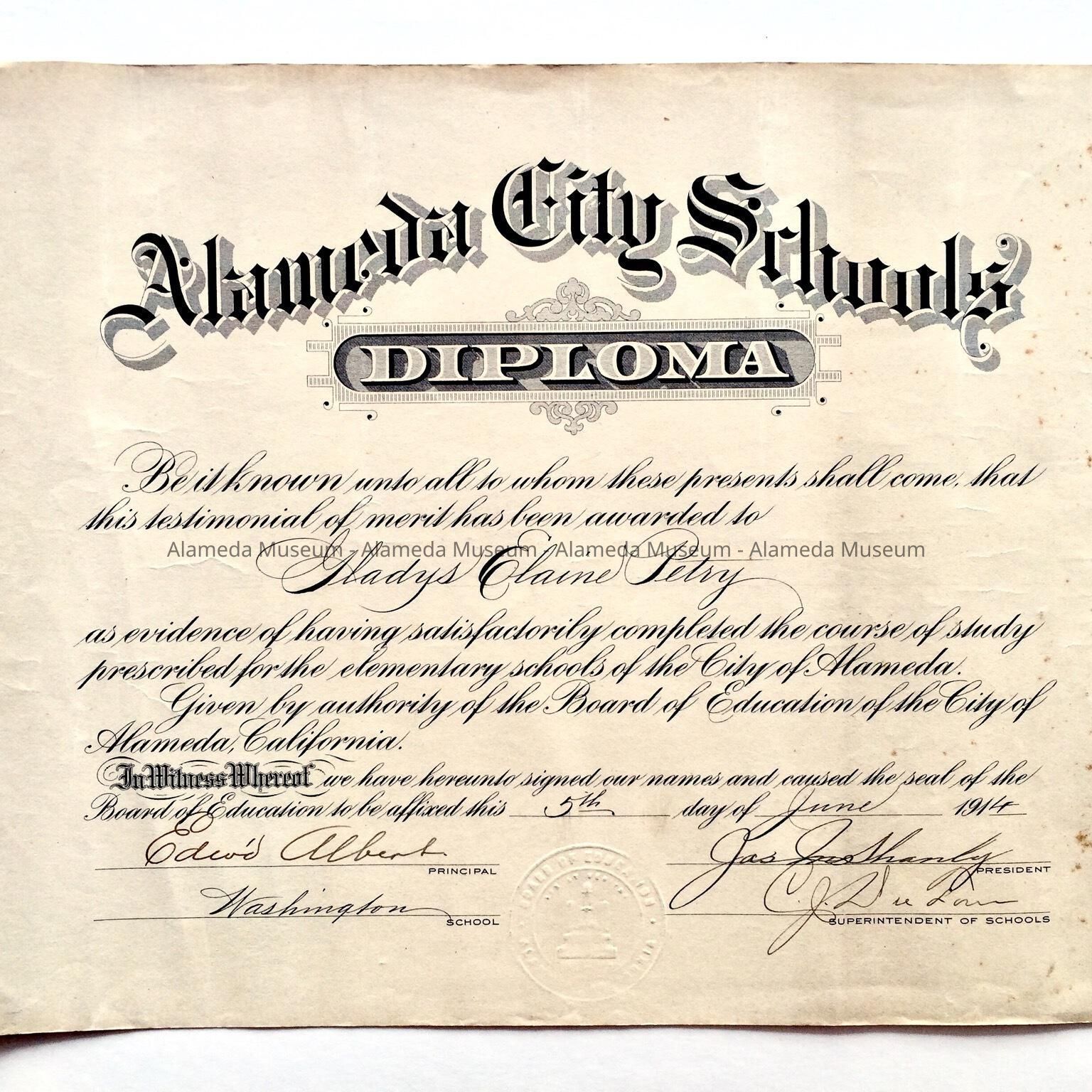 Washington School Diploma awarded Gladys Elaine Petry, 1914Entry/Object ID