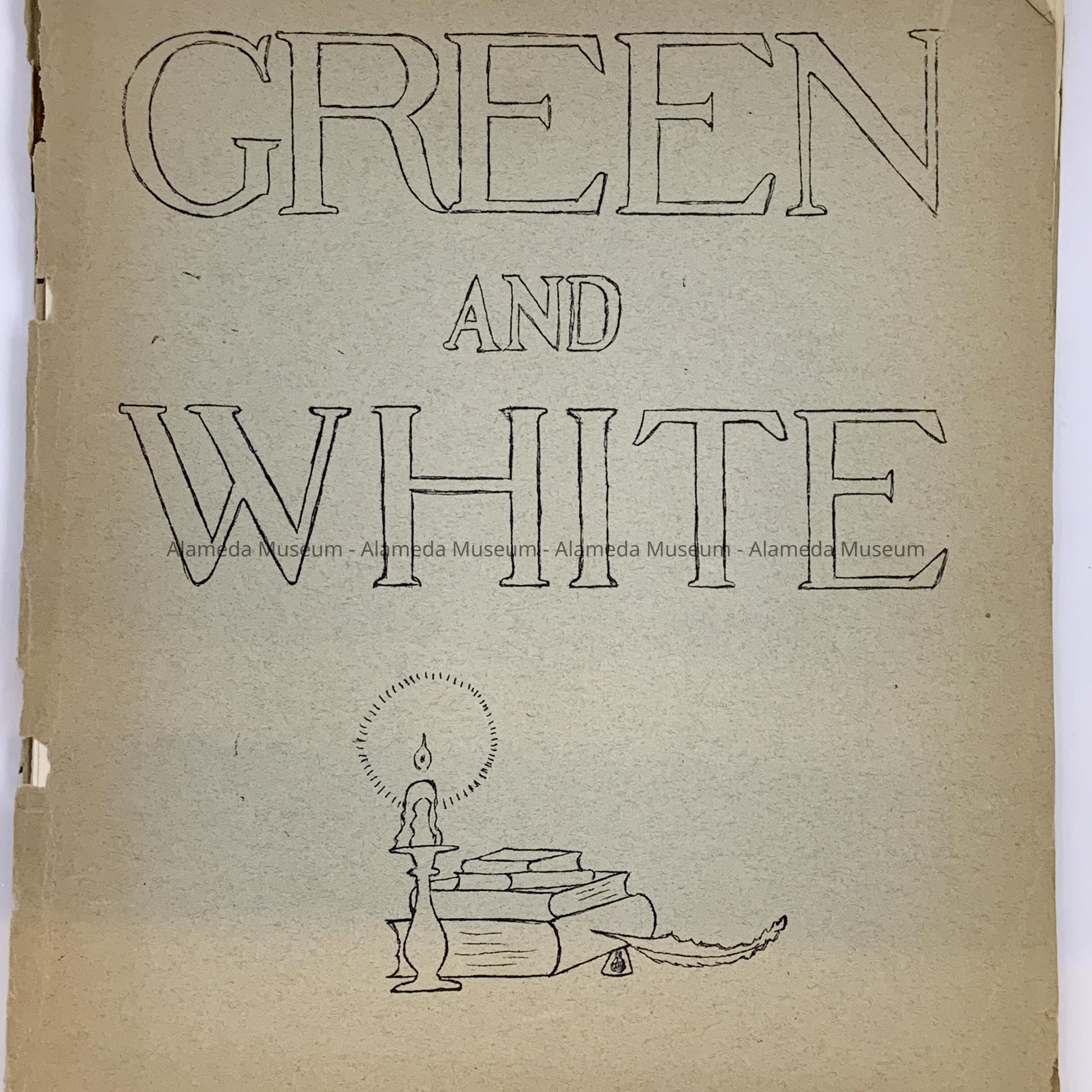 Softbound booklet. Cover design consists of bold-printed caption, “Green and White” in green-colored type on an off-white-colored background.