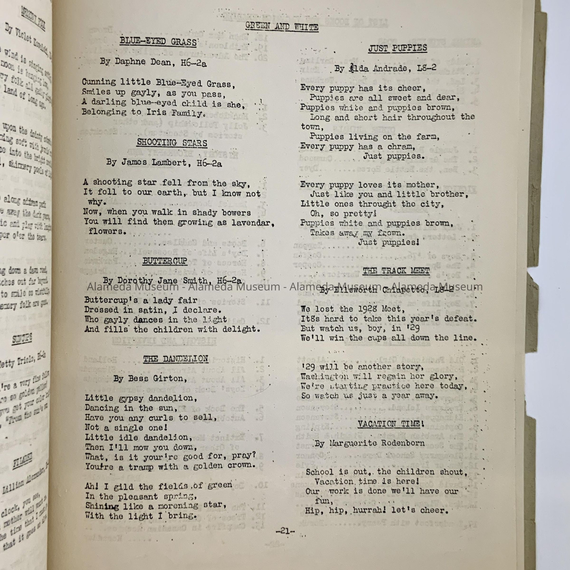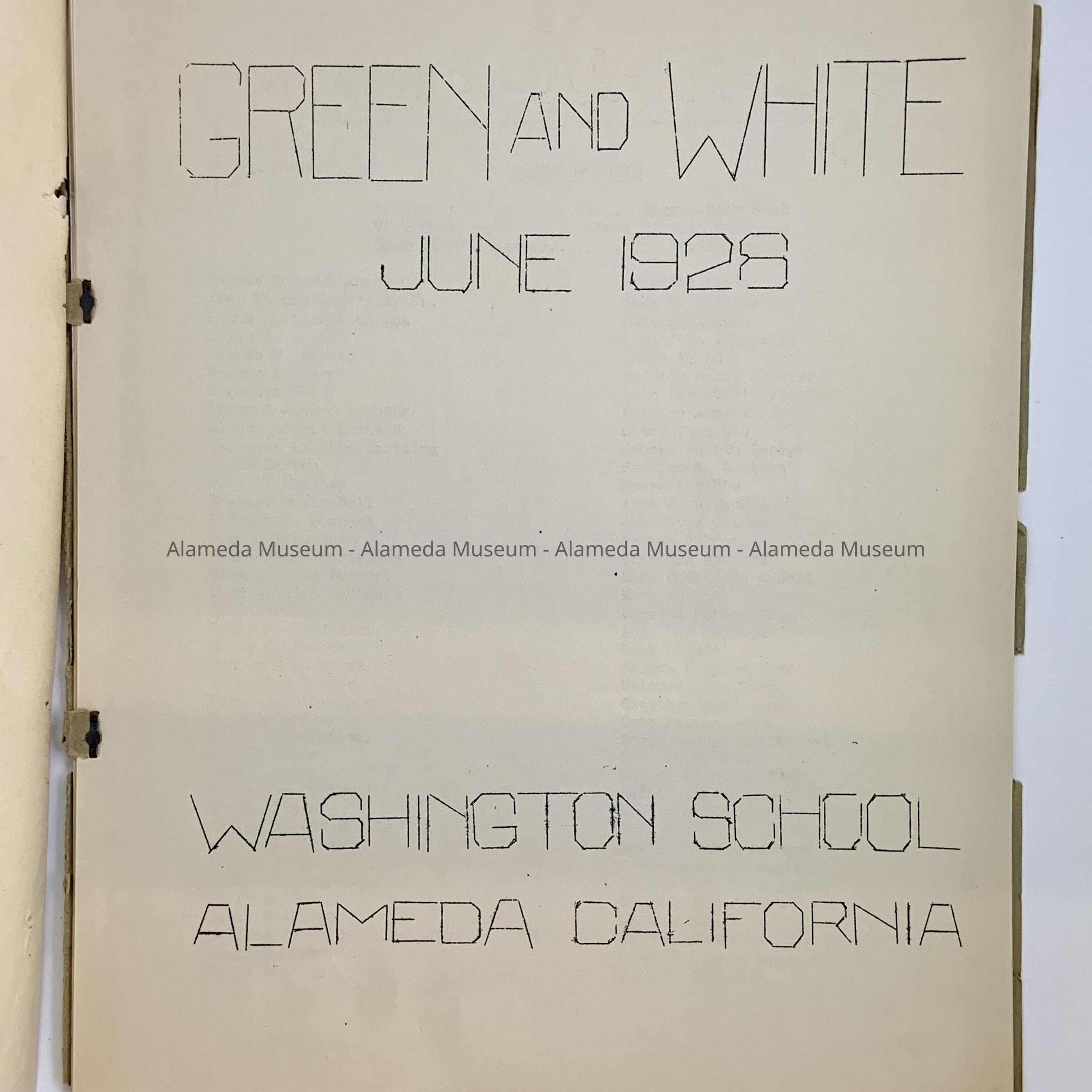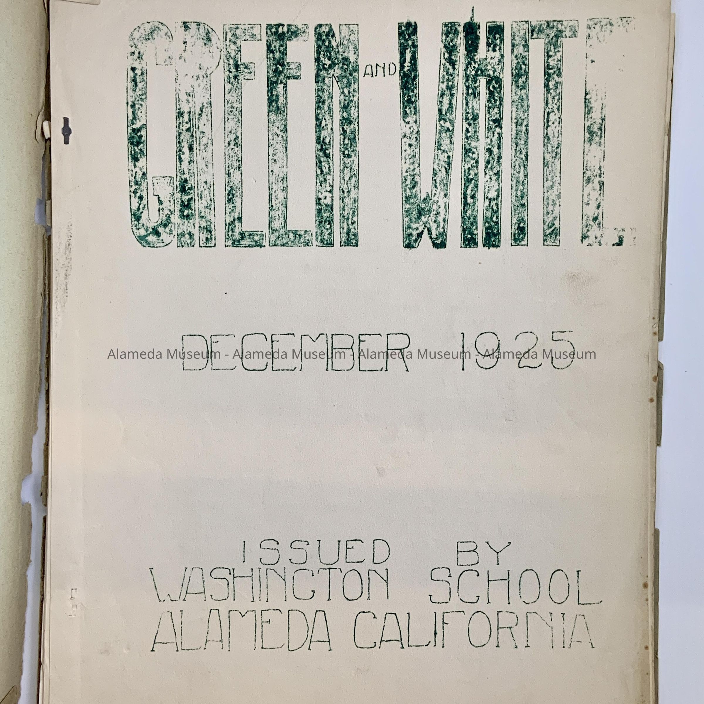 Washington School publication entitled, “Green and White” for December 1925 and June 1928. Contents include list of graduates and articles written by members of the student body.