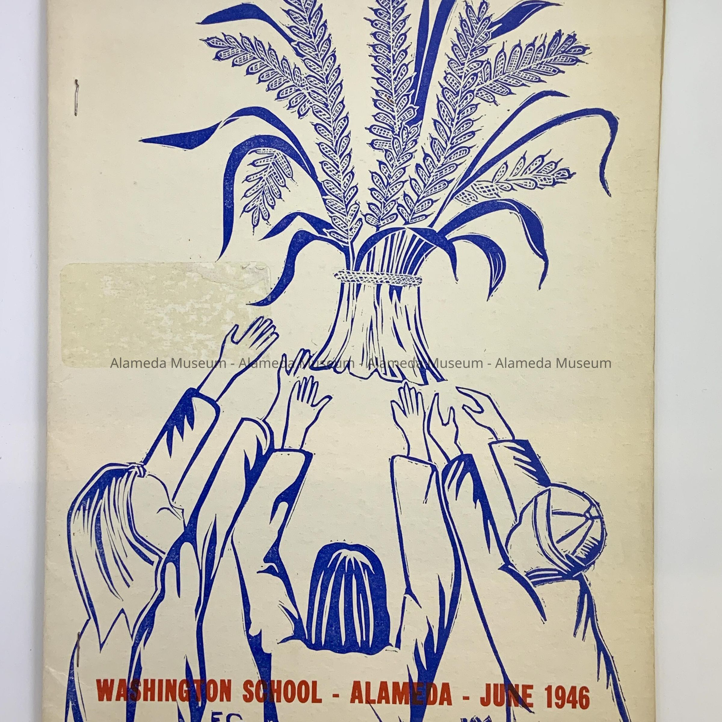 Description: Softbound booklet. Cover has illustrations of children and bold-printed caption, “Washington School” in blue and red colored type on a white colored background.