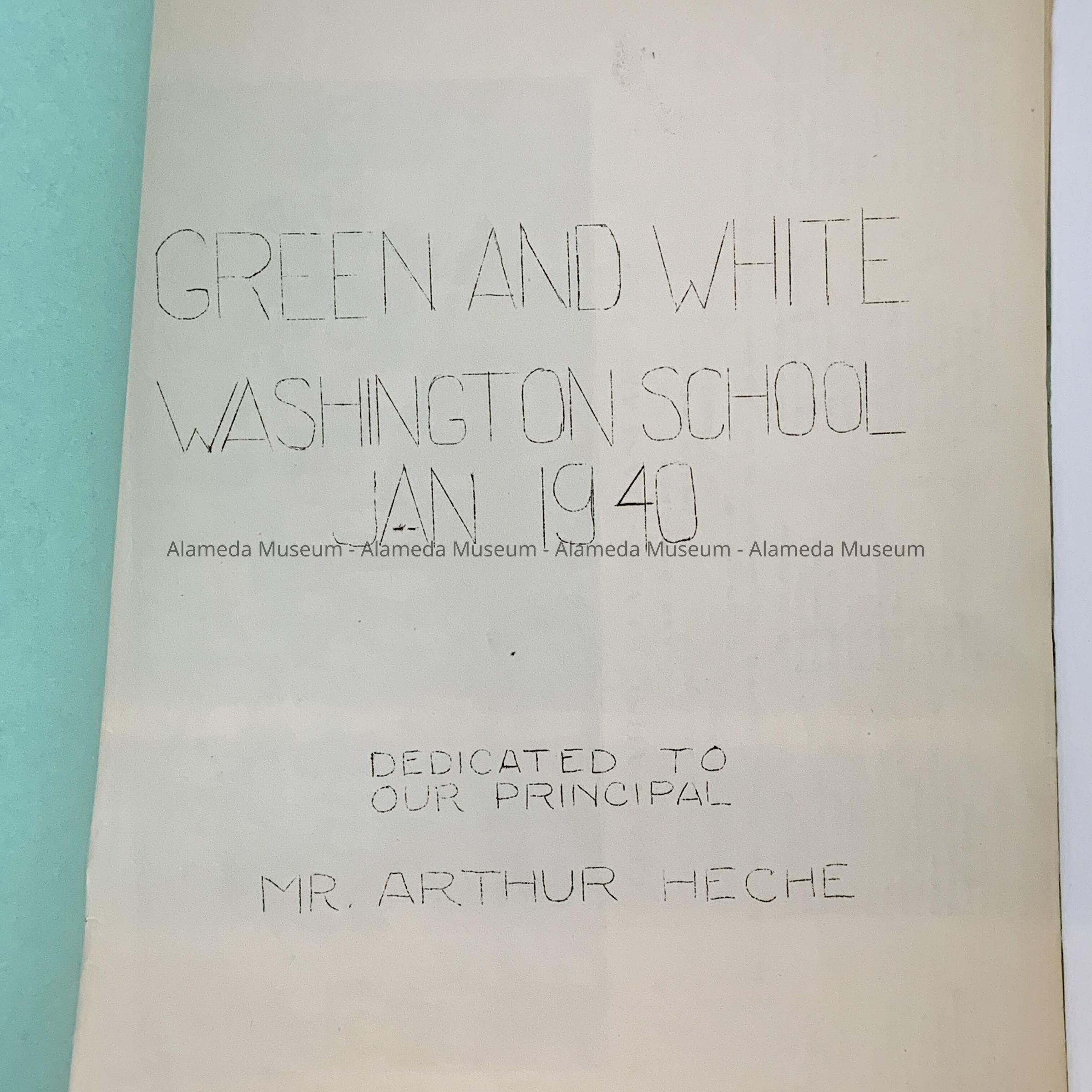 Washington School 'Green and White' Yearbook of January, 1940Entry/Object ID