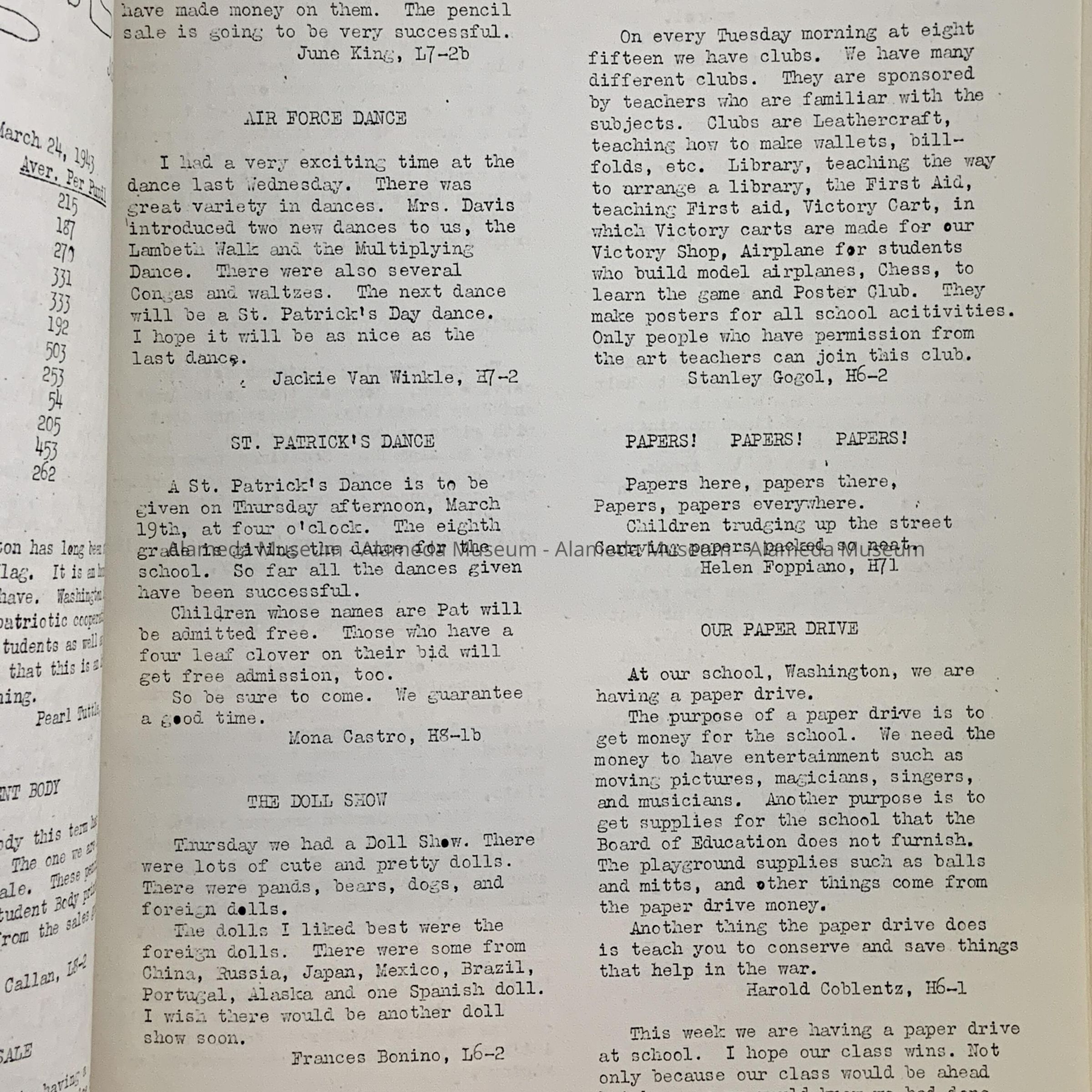 Washington School newletter 'Green and White', June 1943Entry/Object ID
