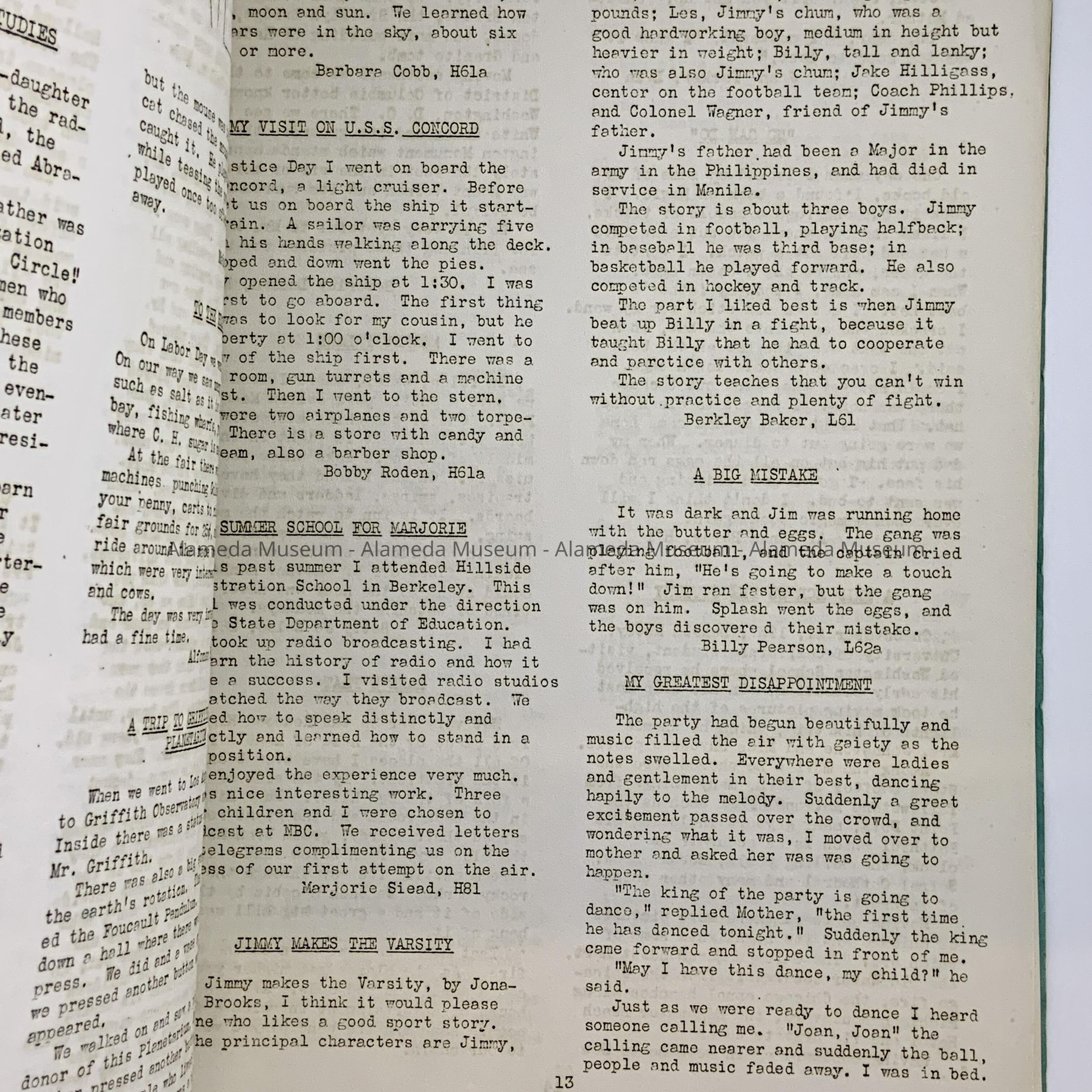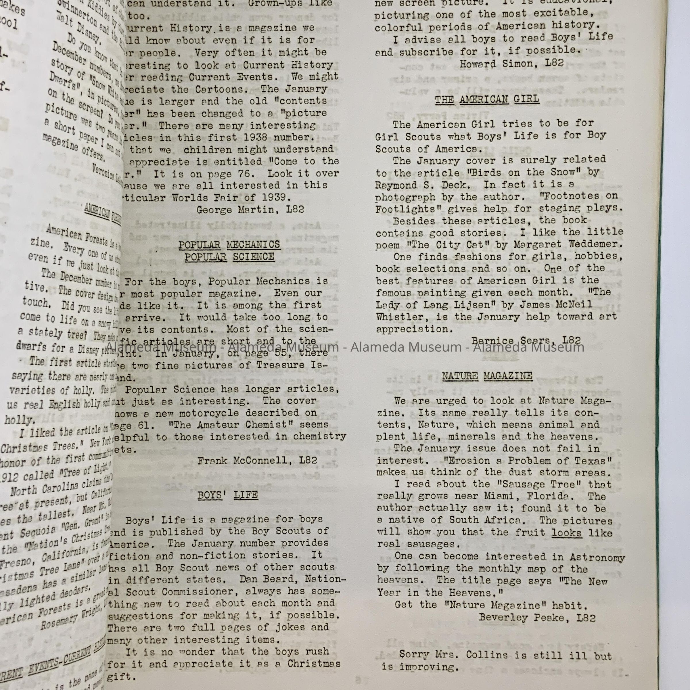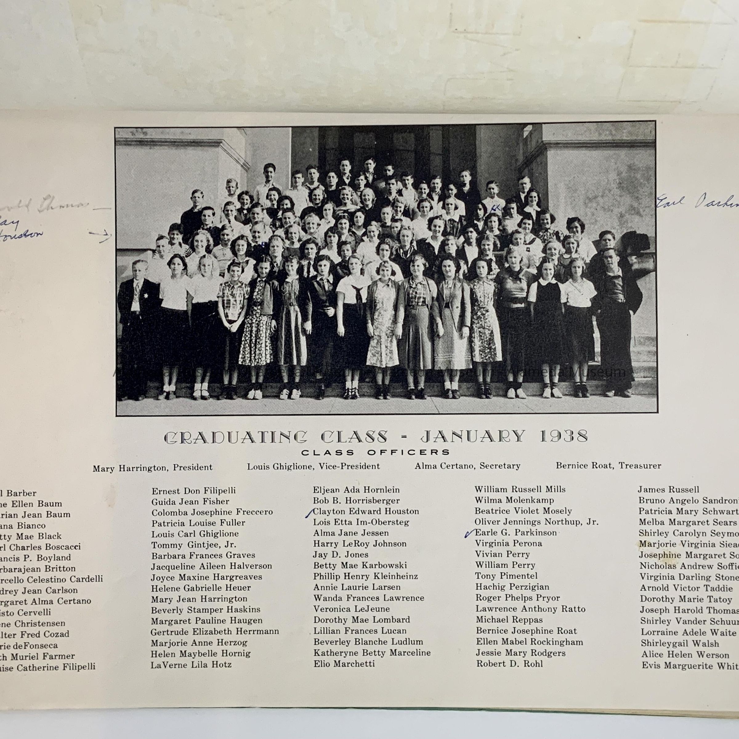 HISTORY OF OBJECT: WASHINGTON SCHOOL YEAR BOOK, JAN, 1938.