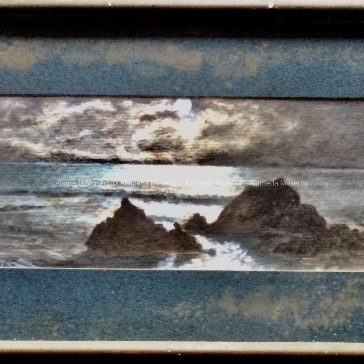 History of Object: A signed watercolor sketch of an ocean scene possibly created in Honolulu, Hawaii. Painted and signed, “F. Deas.” Frances Deas was the wife of Henry Deas, 1729 San Antonio Avenue, Alameda.