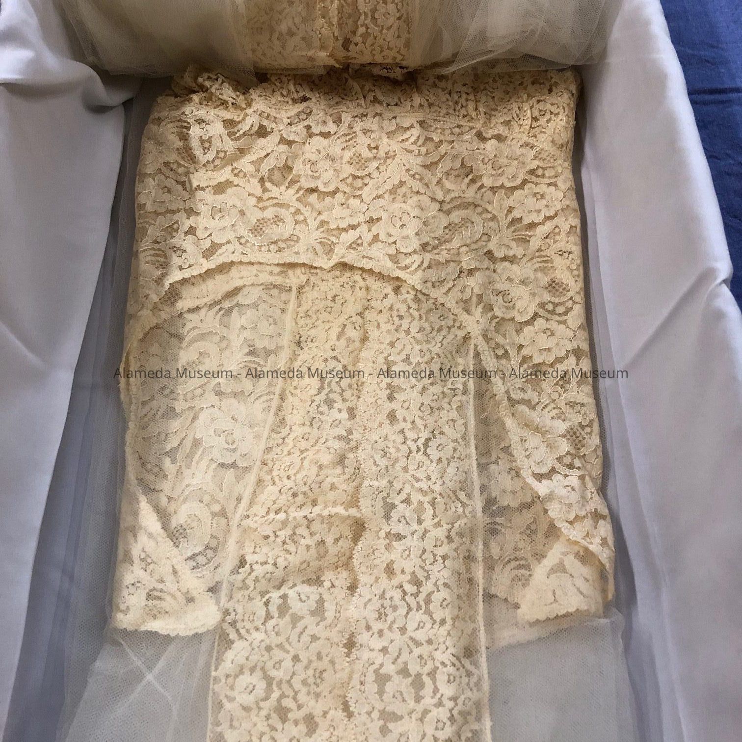 History of Object: Ensemble worn at the wedding of Barbara (Bobbi) Perata and Henry Hardt. Barbara was the daughter of Alameda residents Benadetto & Renata (Orio) Perata. Henry Hardt was the son of Charles & Edith (Martinelli) Hardt of Oakland.