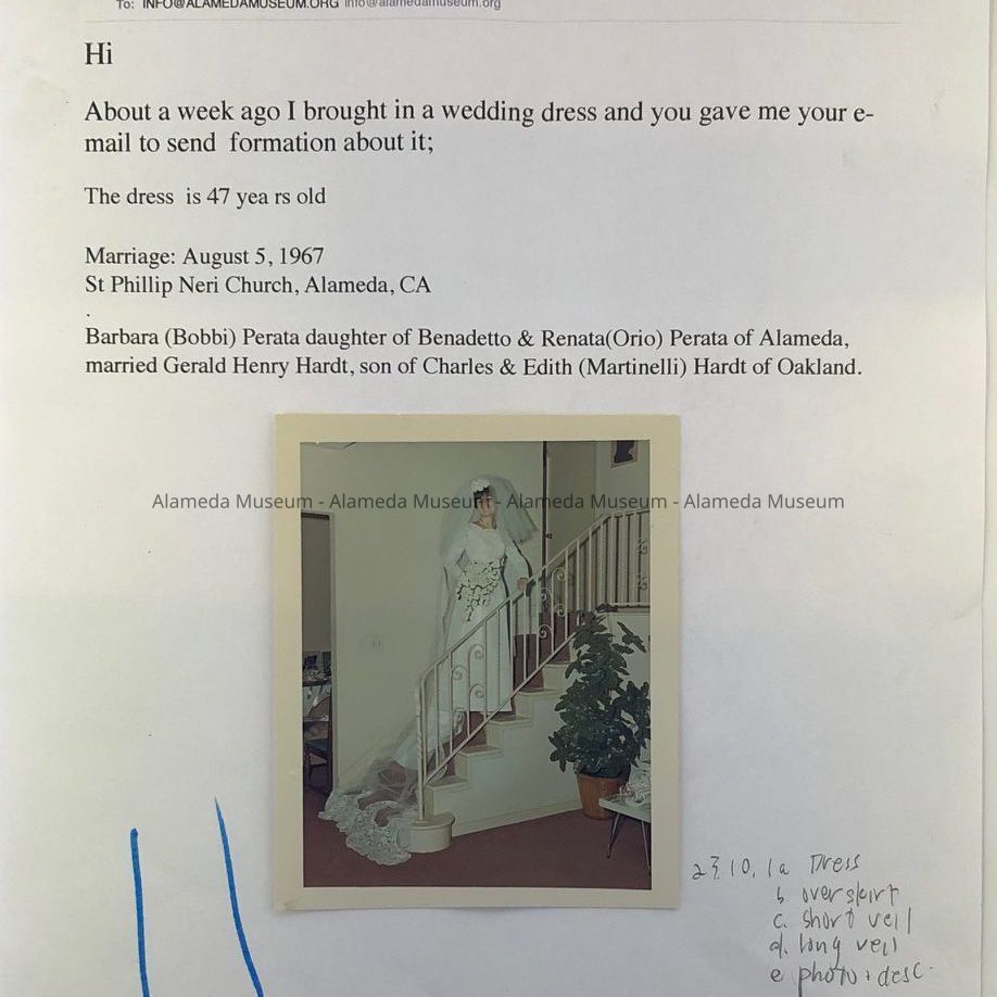 Wedding Dress of Barbara (Bobbi) Perata, 1967Entry/Object ID