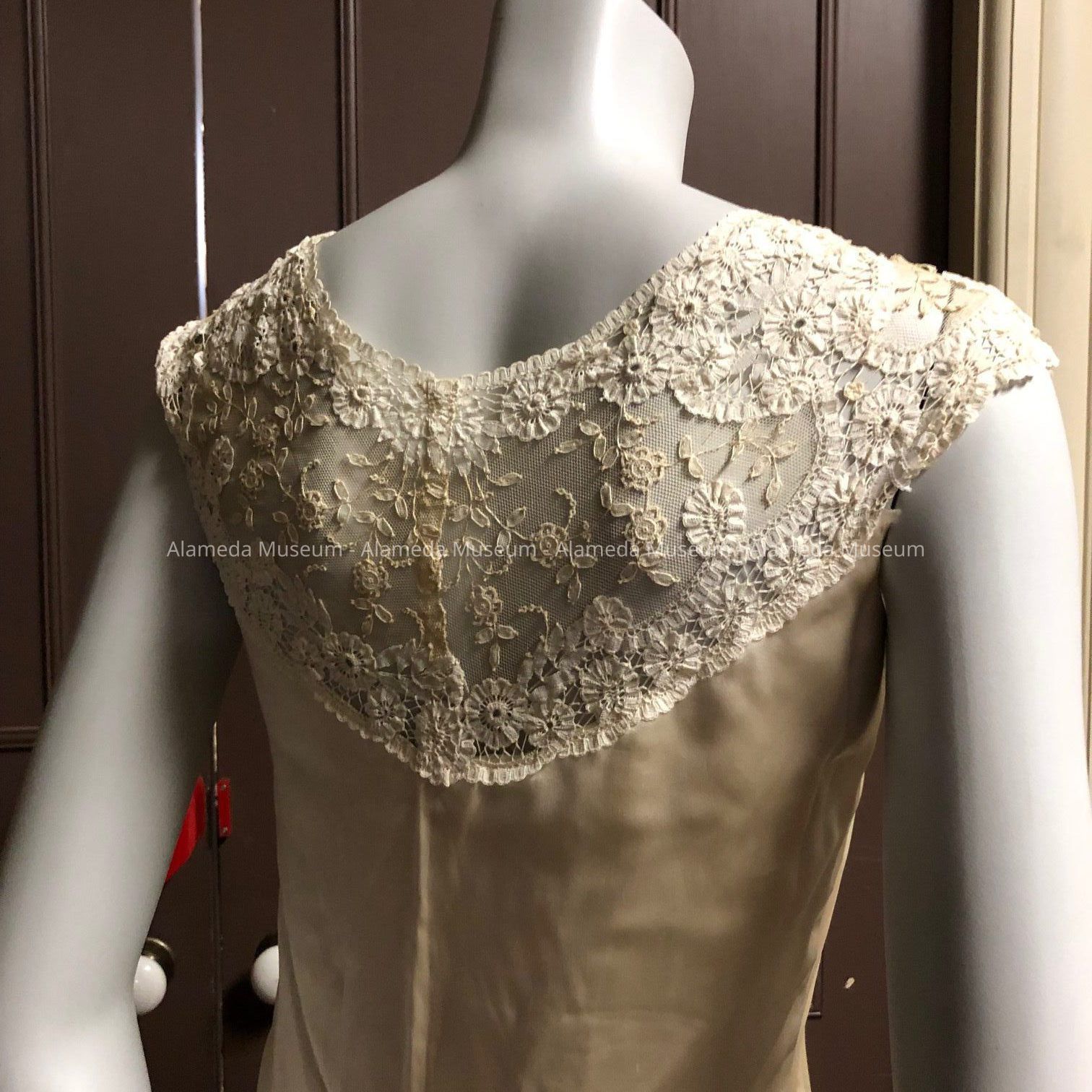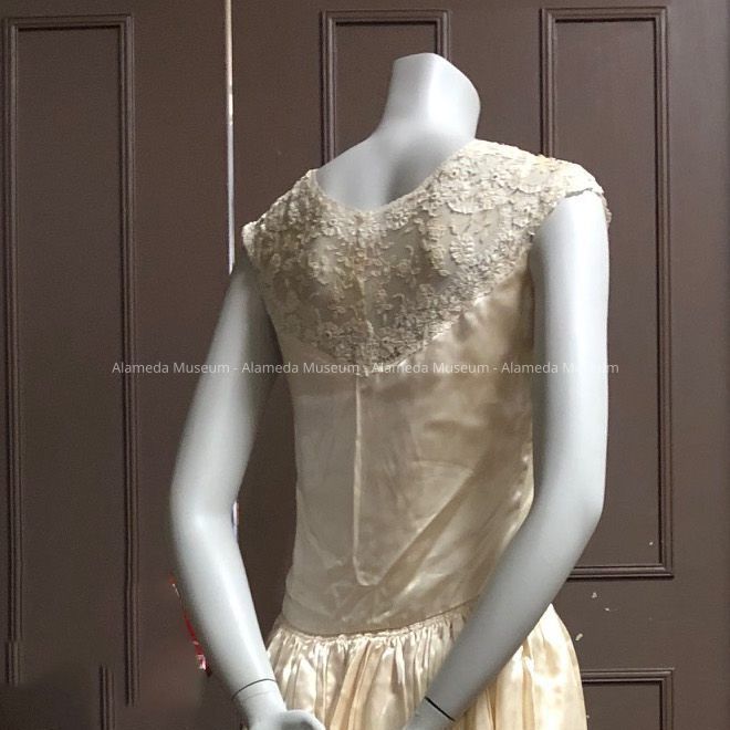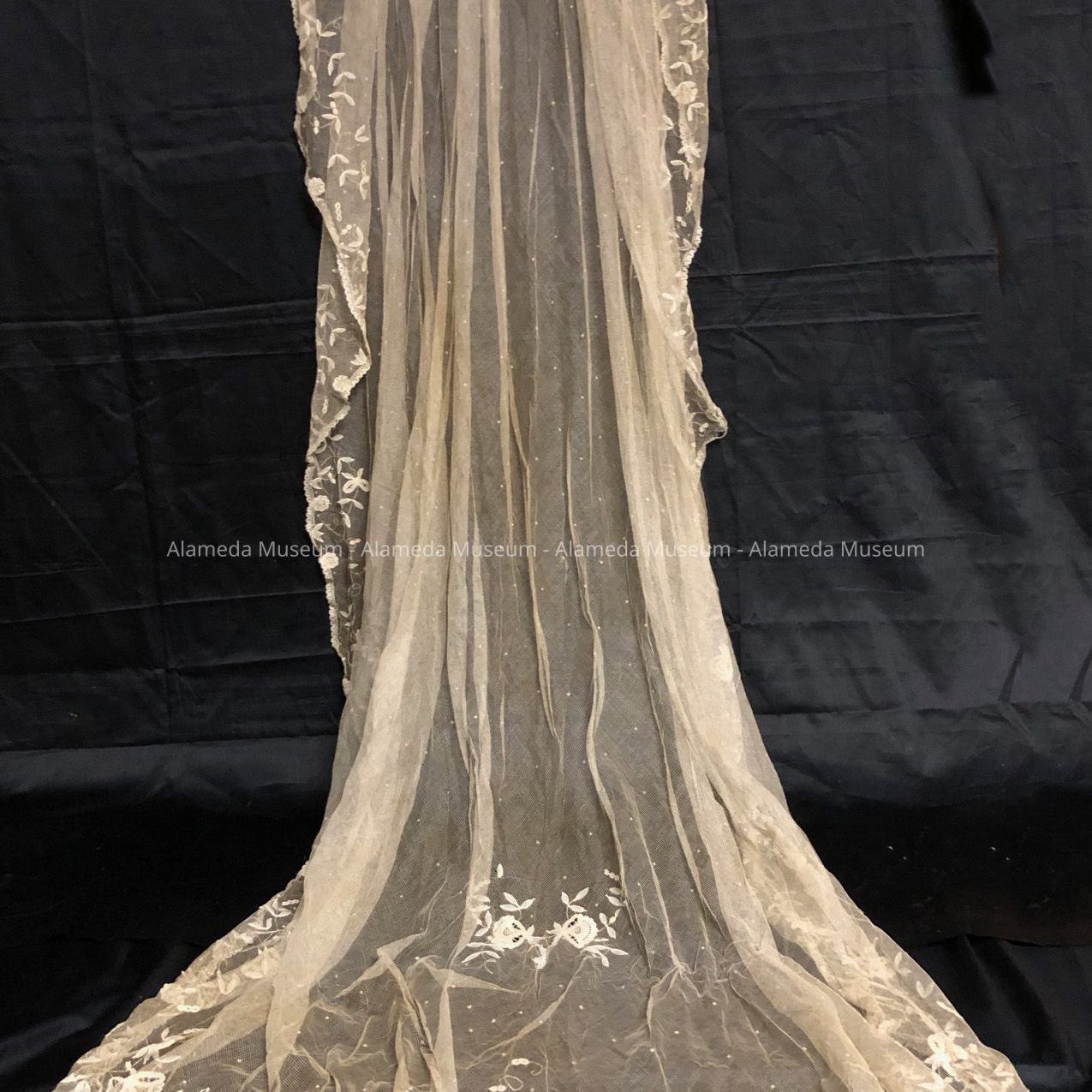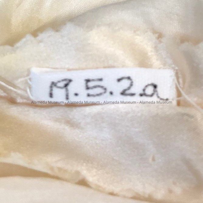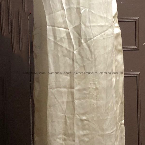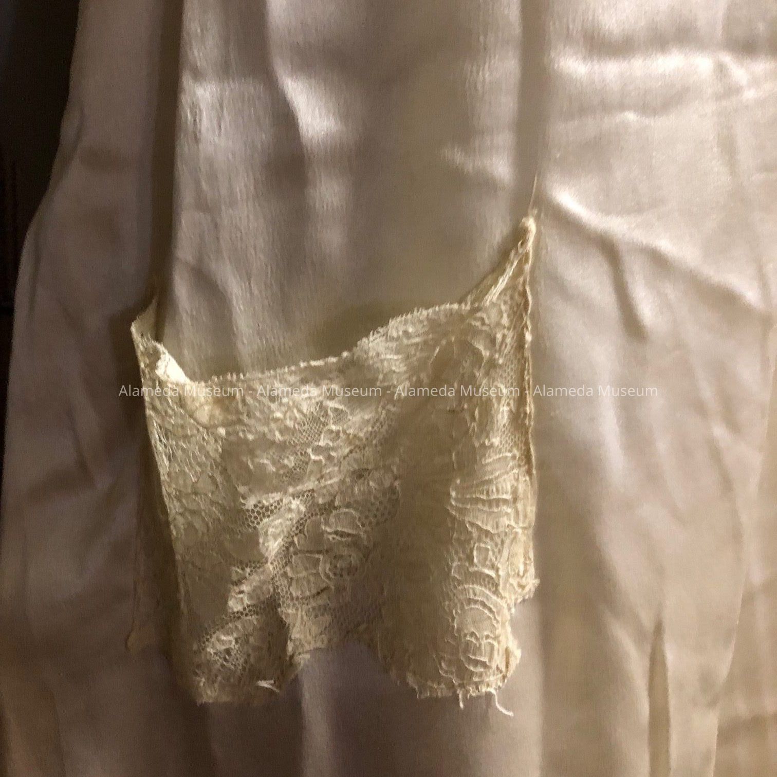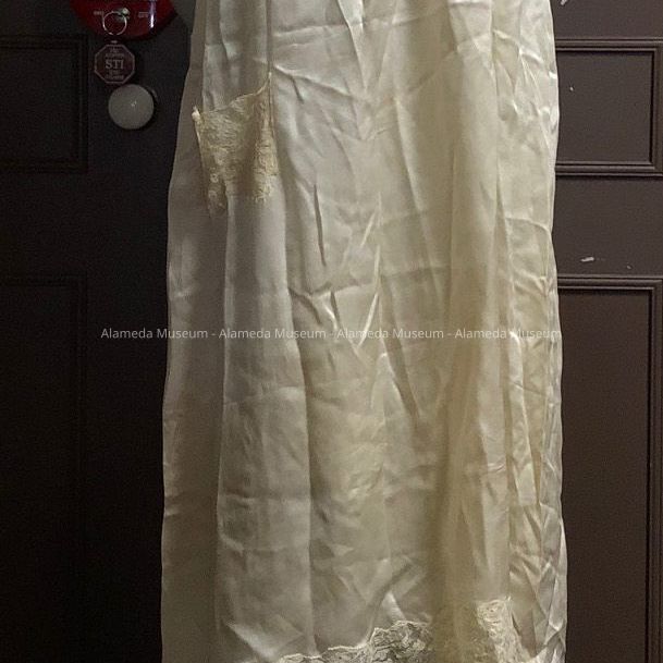 History of Object: A wedding dress worn by Ethel B. Stone, daughter of Mr. and Mrs. W.F Stone, when she married Henry W. O'Grady, a dentist. The wedding took place in the Stone family home on Portola St., Alameda.