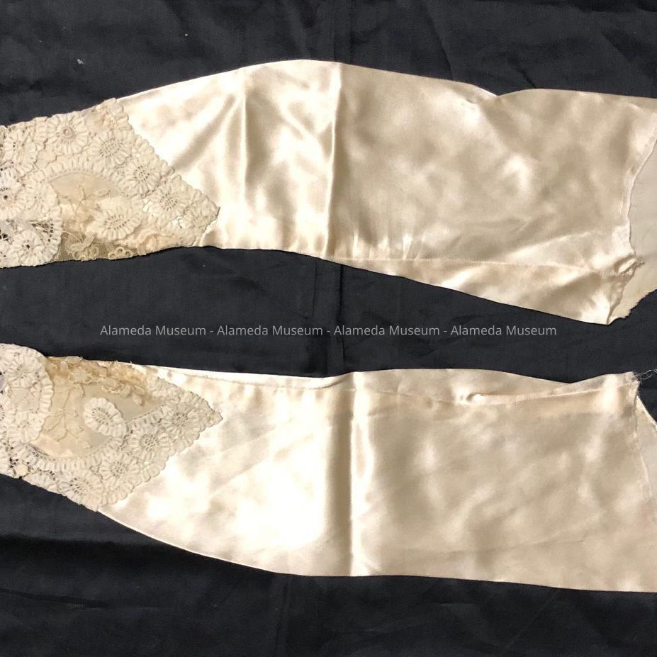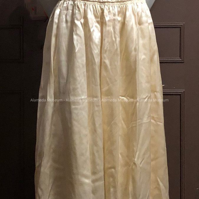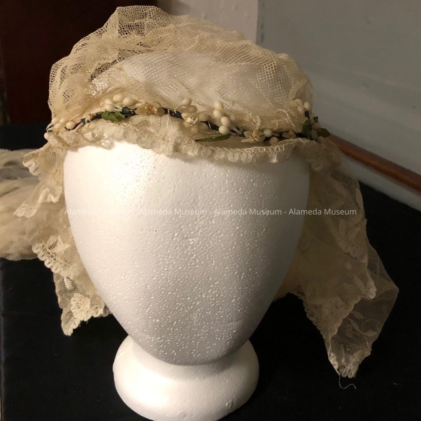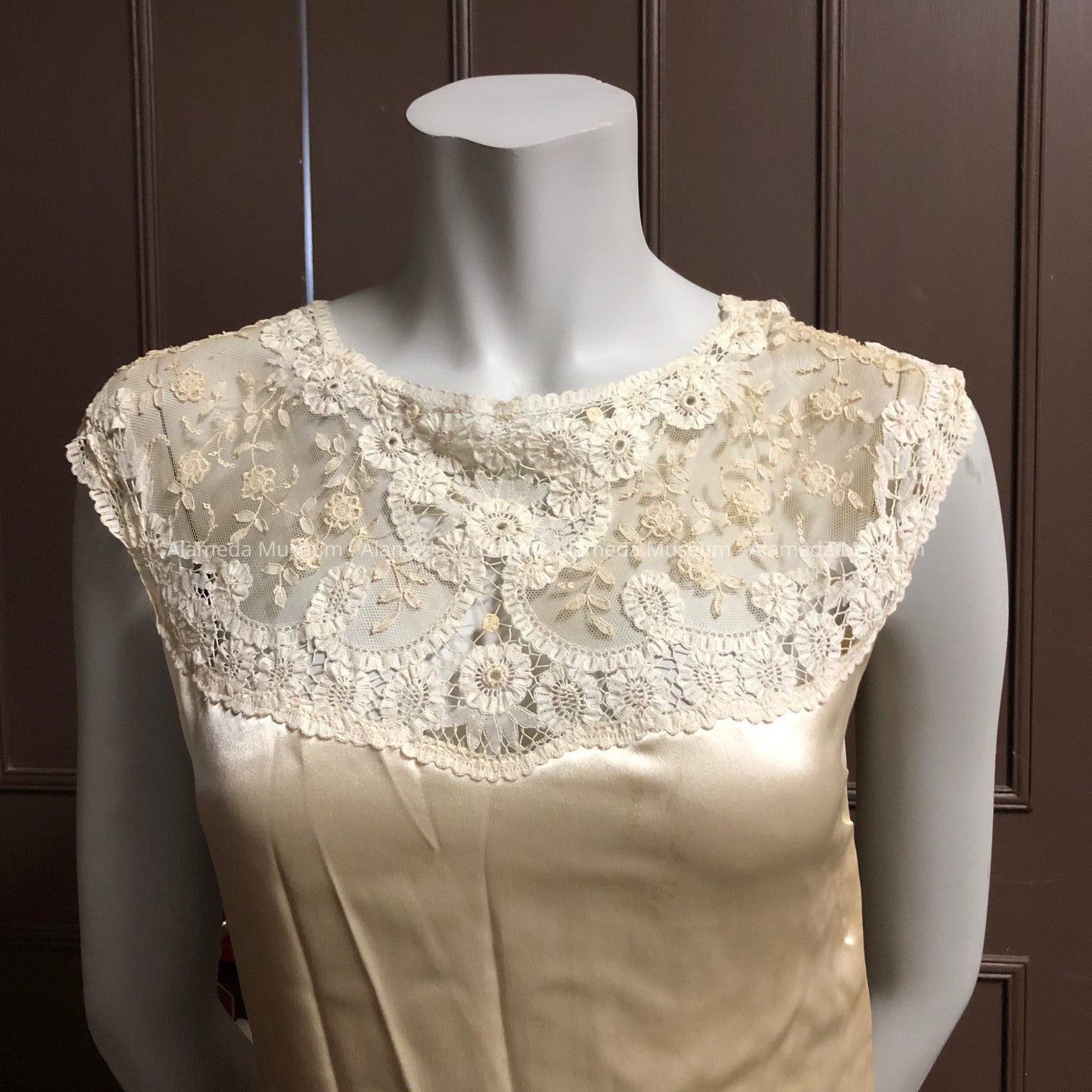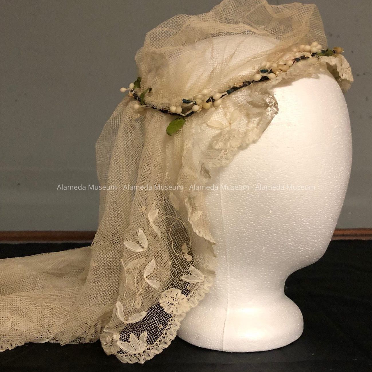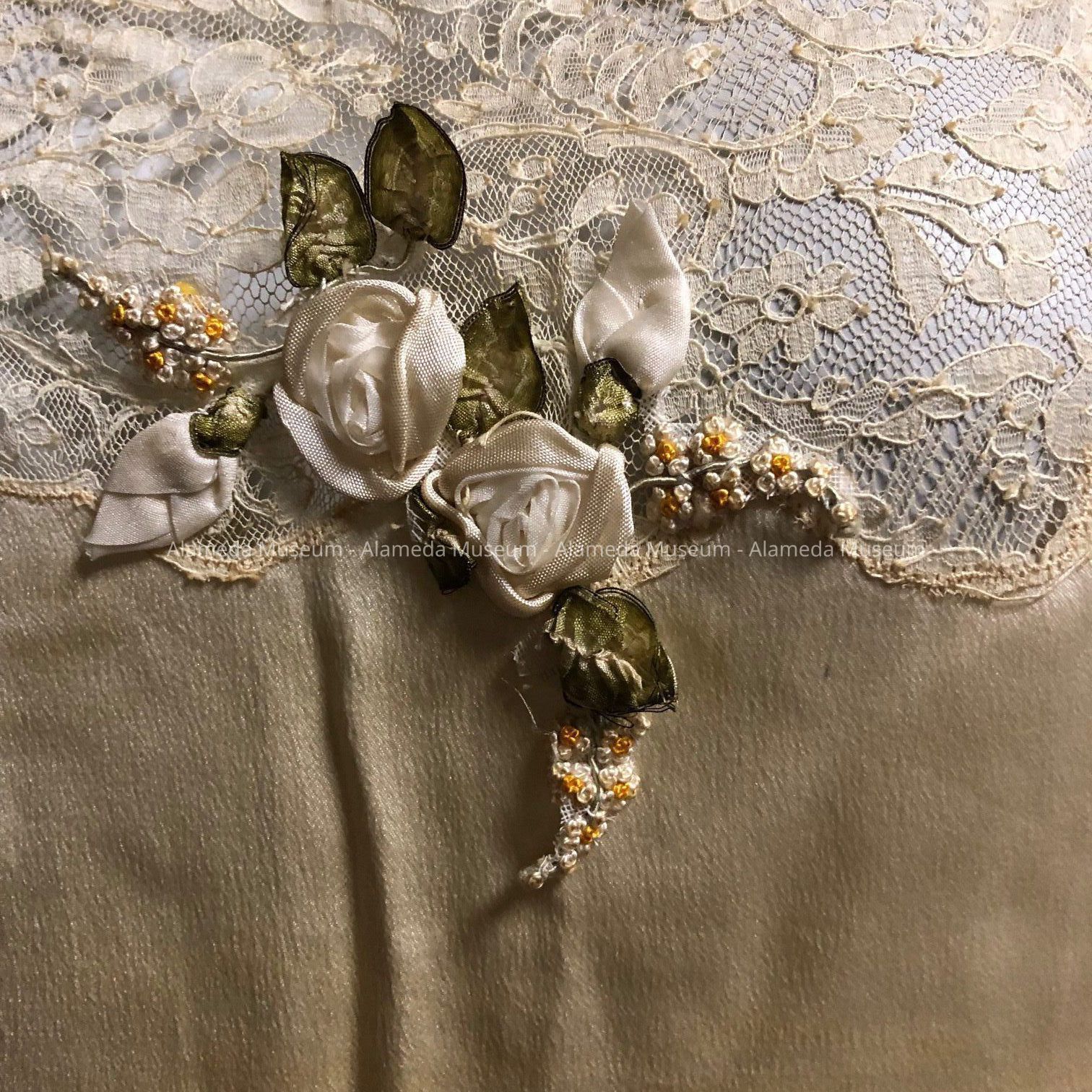 History of Object: A wedding dress worn by Ethel B. Stone, daughter of Mr. and Mrs. W.F Stone, when she married Henry W. O'Grady, a dentist. The wedding took place in the Stone family home on Portola St., Alameda.