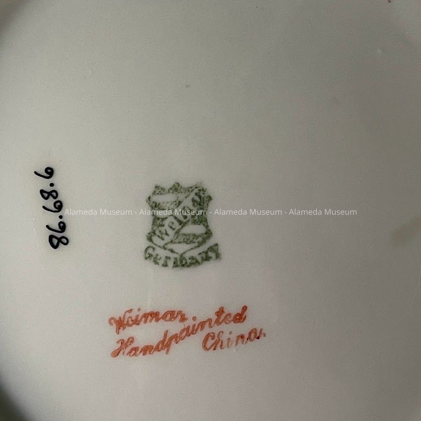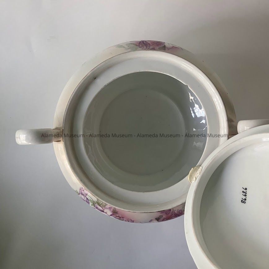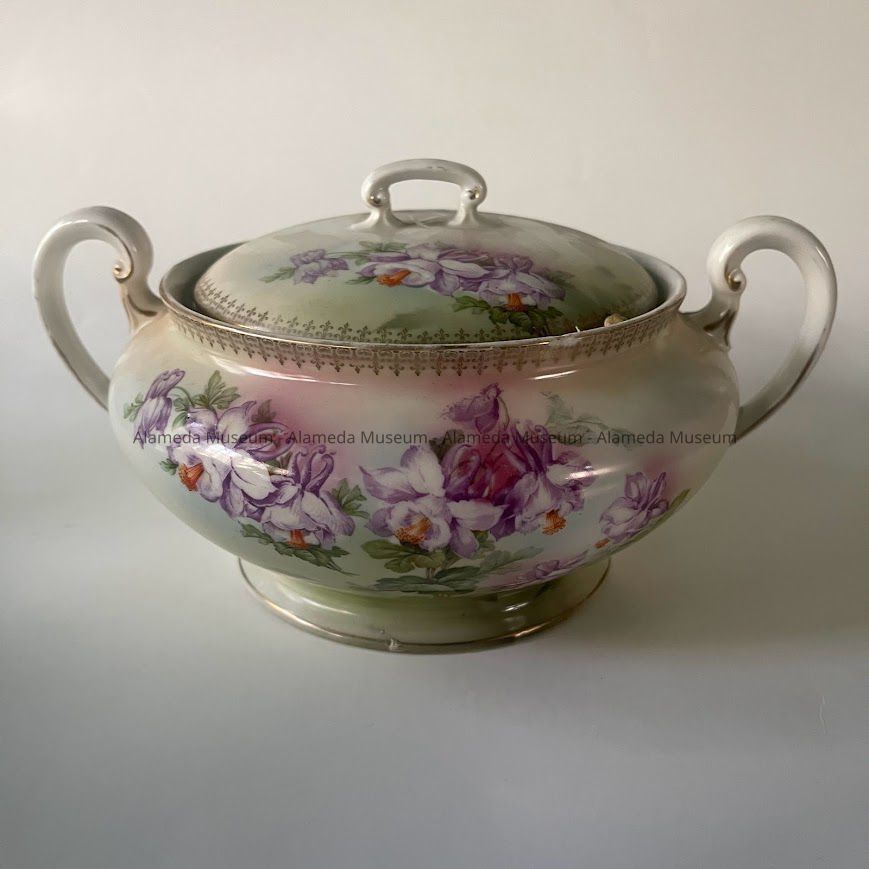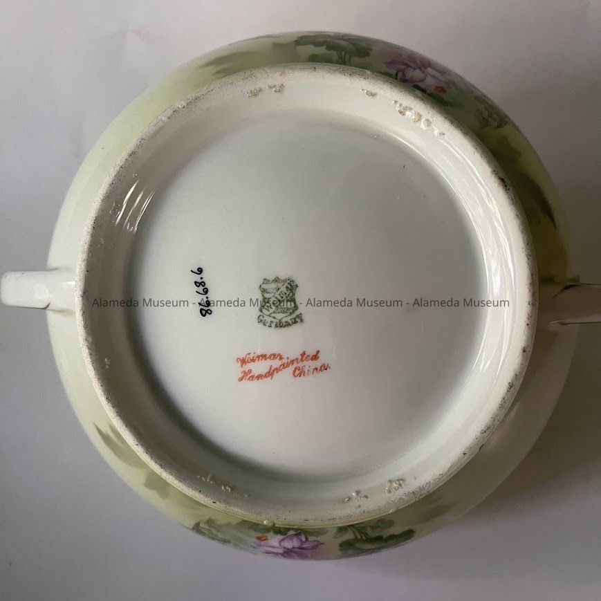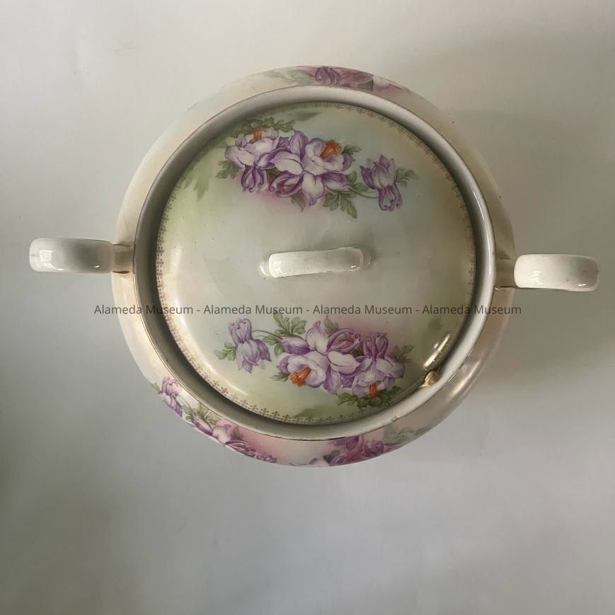 History of Object: Biscuit jar owned by the late Mrs. Marie Anderson Camp, subject longtime resident of Bay Street, Alameda.