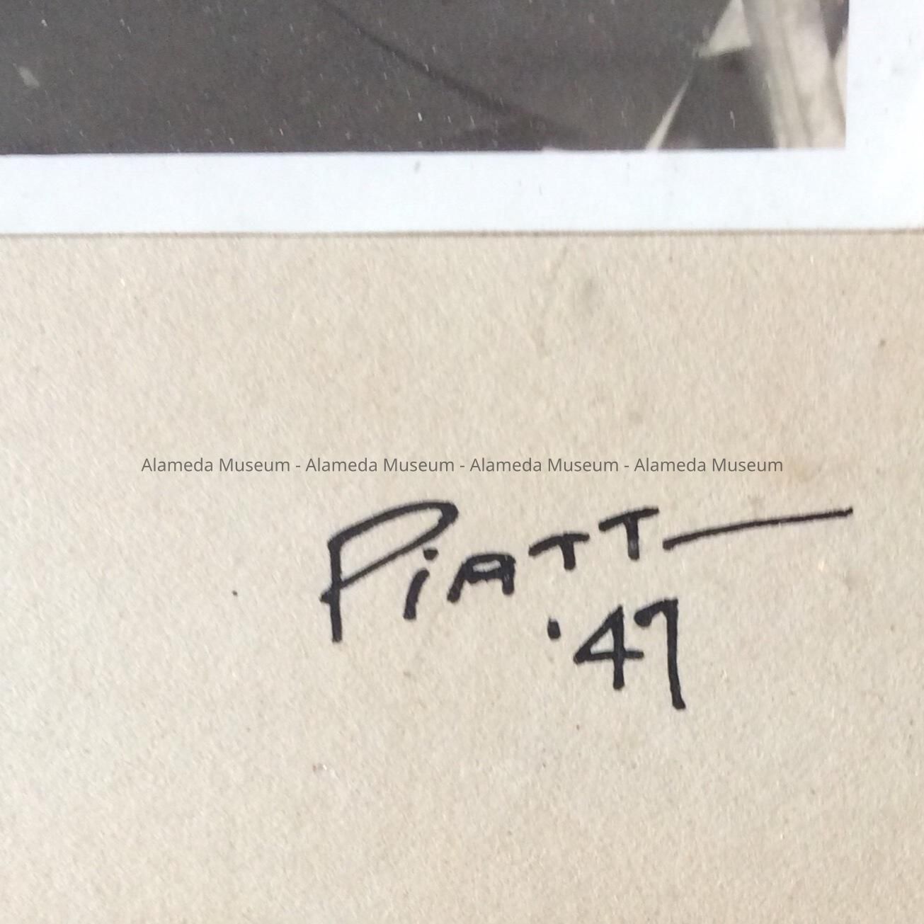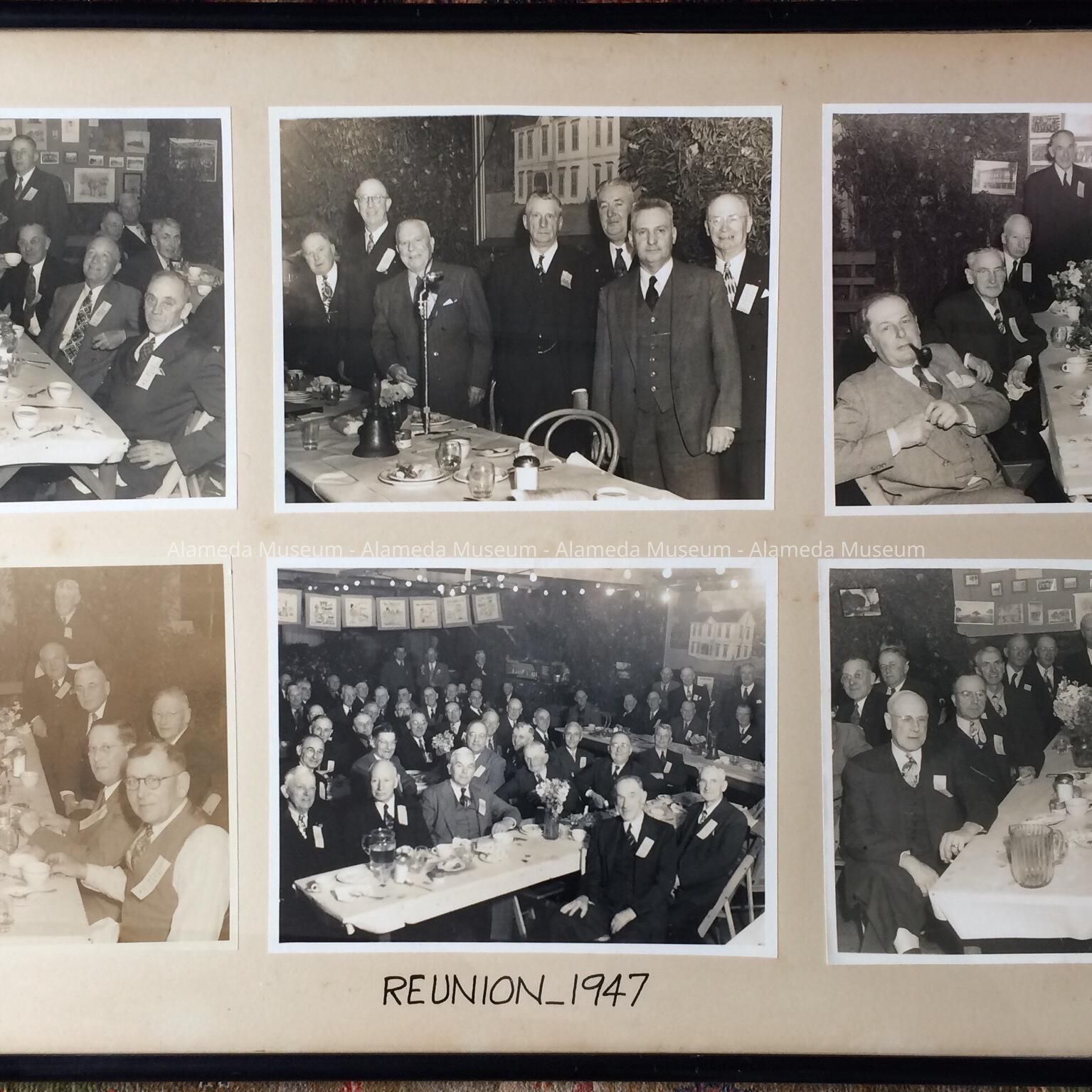 Description: Black frame enclosing 6 photographs on light gray mounting, with inscription "Reunion, 1947" and signed by the photographer, Piatt, 1947. Size: 34x20½ inches.