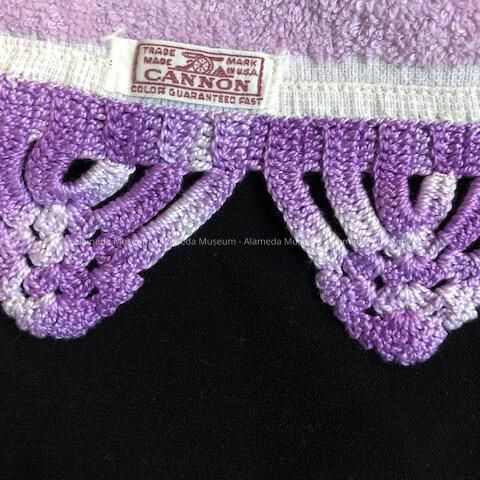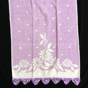 White and lavender terry-cloth towel with hand crocheted fringeEntry/Object ID