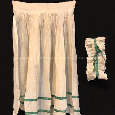White apron trimmed with green ribbon of the Hofmann family, c. 1940sEntry/Object ID