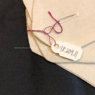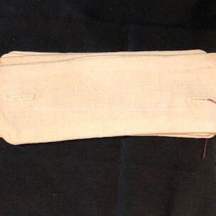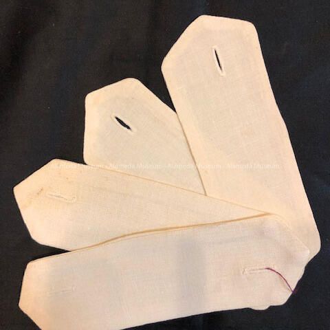 RECTANGULAR-SHAPED WHITE-COLORED COTTON BUTTON HOLES FOR STUDS. POSSIBLY USED FOR LAPEL CHANGES.