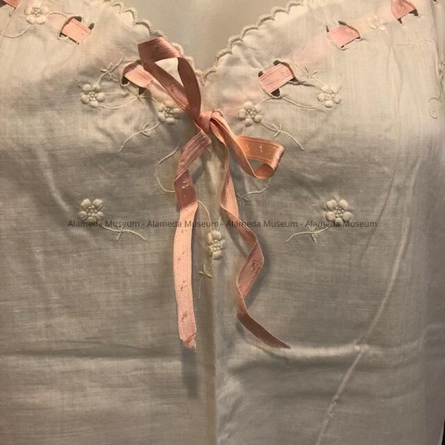 White cotton nightgown with sweetheart neckline and embroidery, c. 1920sEntry/Object ID