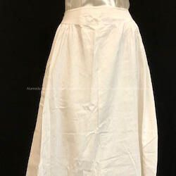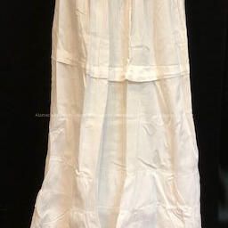 Description: Petticoat of white cotton with double flounce hem of embroidered eyelet. Straw string closure.
