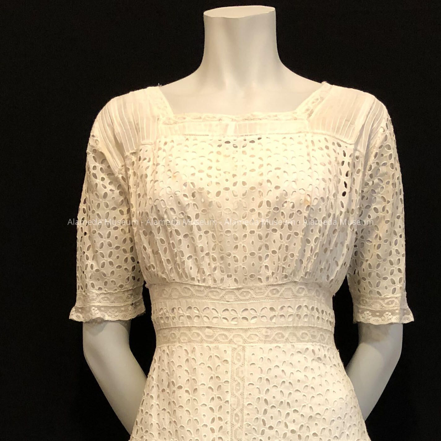 White embroidered cotton lawn eyelet with embroidered tunic, 1914Entry/Object ID