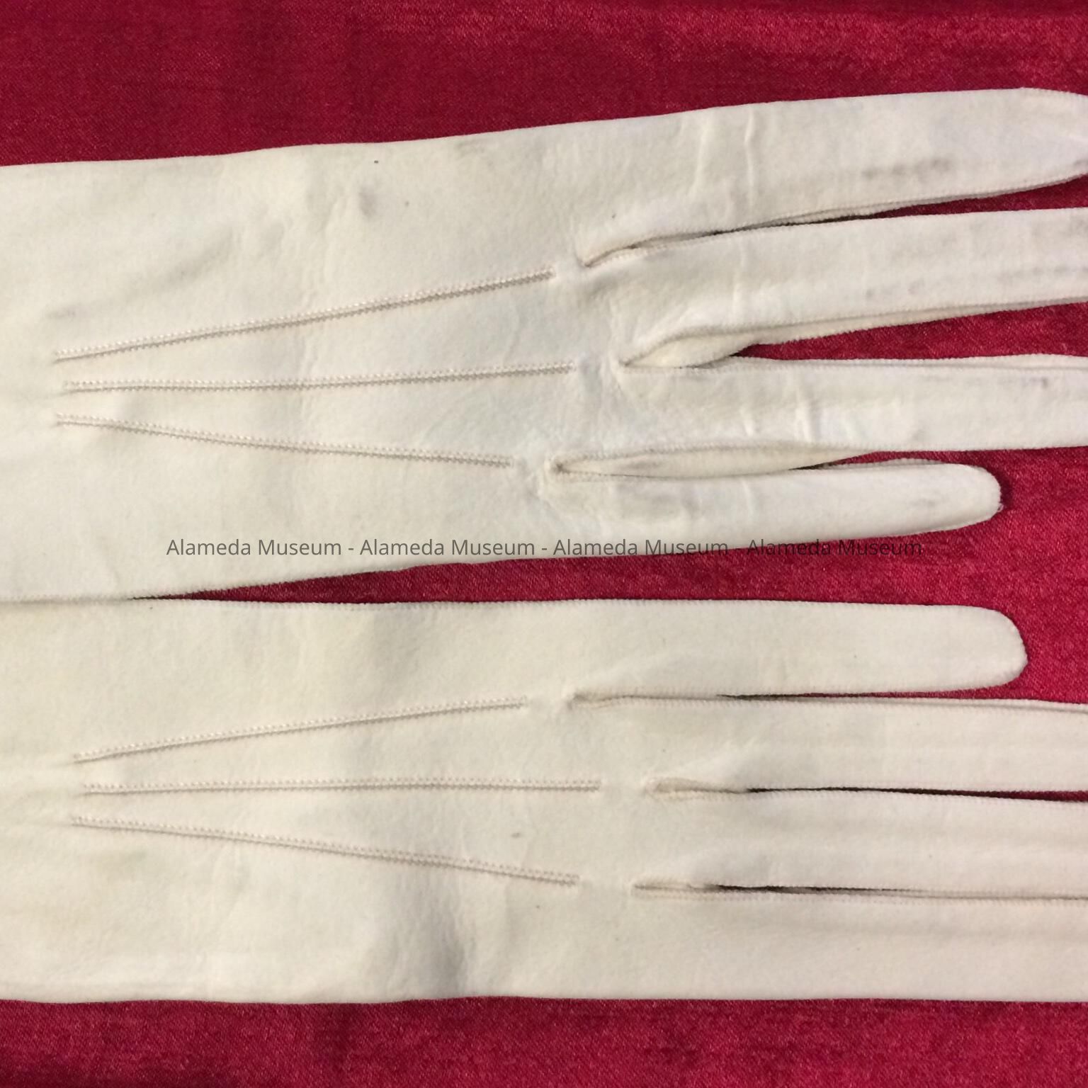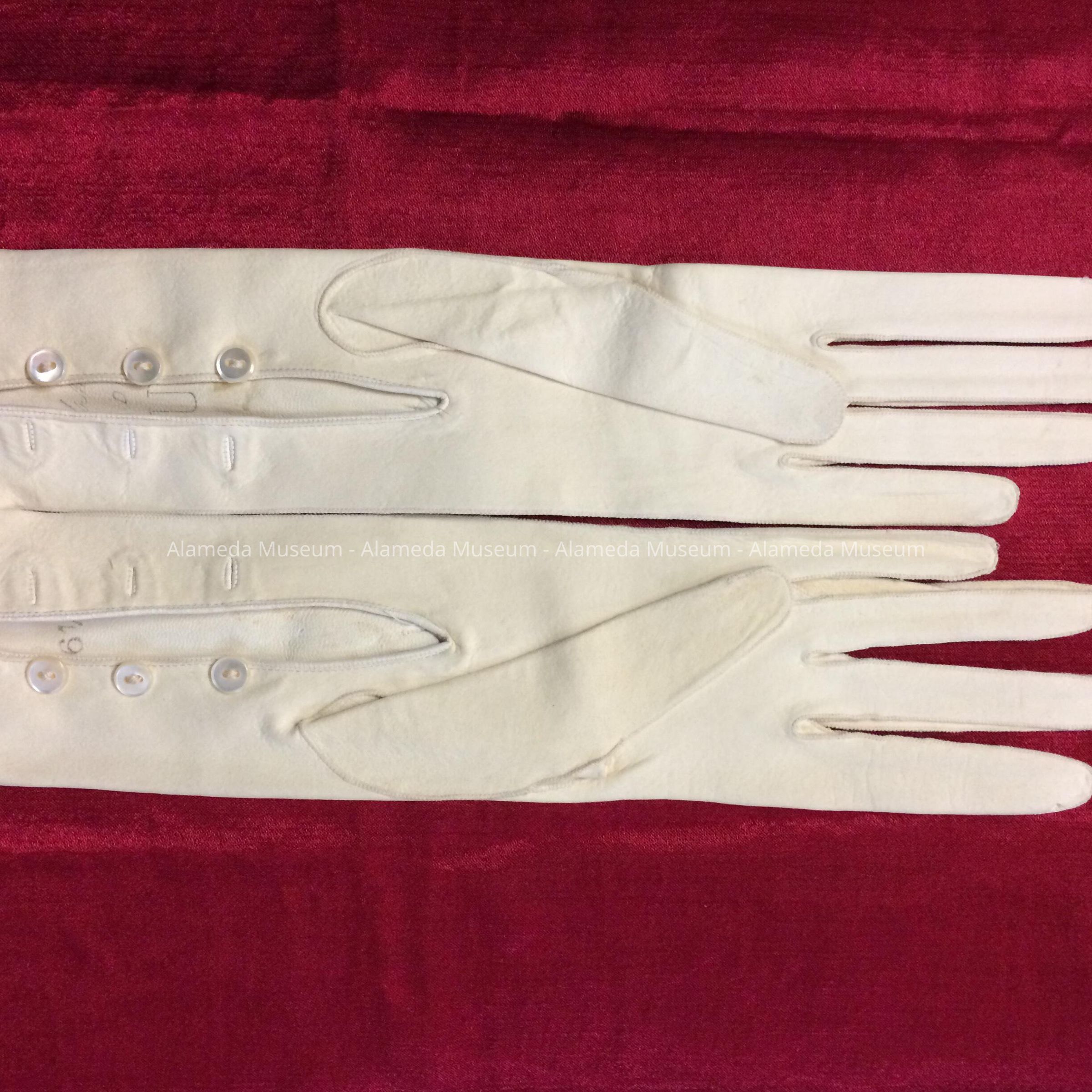 History of Object: Kid gloves of Harriet Holmes Haslett, wife of Samuel M., old-time residents of Alameda.