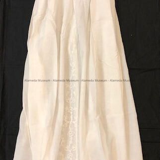 History of Object: Ancestral christening dress worn by consecutive members of the Deas family, early residents of Alameda. The Henry Deas residence, 1729 San Antonio Avenue, was erected in 1879 and is still standing (1989). Henry Deas, patriarch of the Alameda branch of the Deas family, first wore the dress at his christening in 1844, subsequently his children and grandchildren all wore the gown.