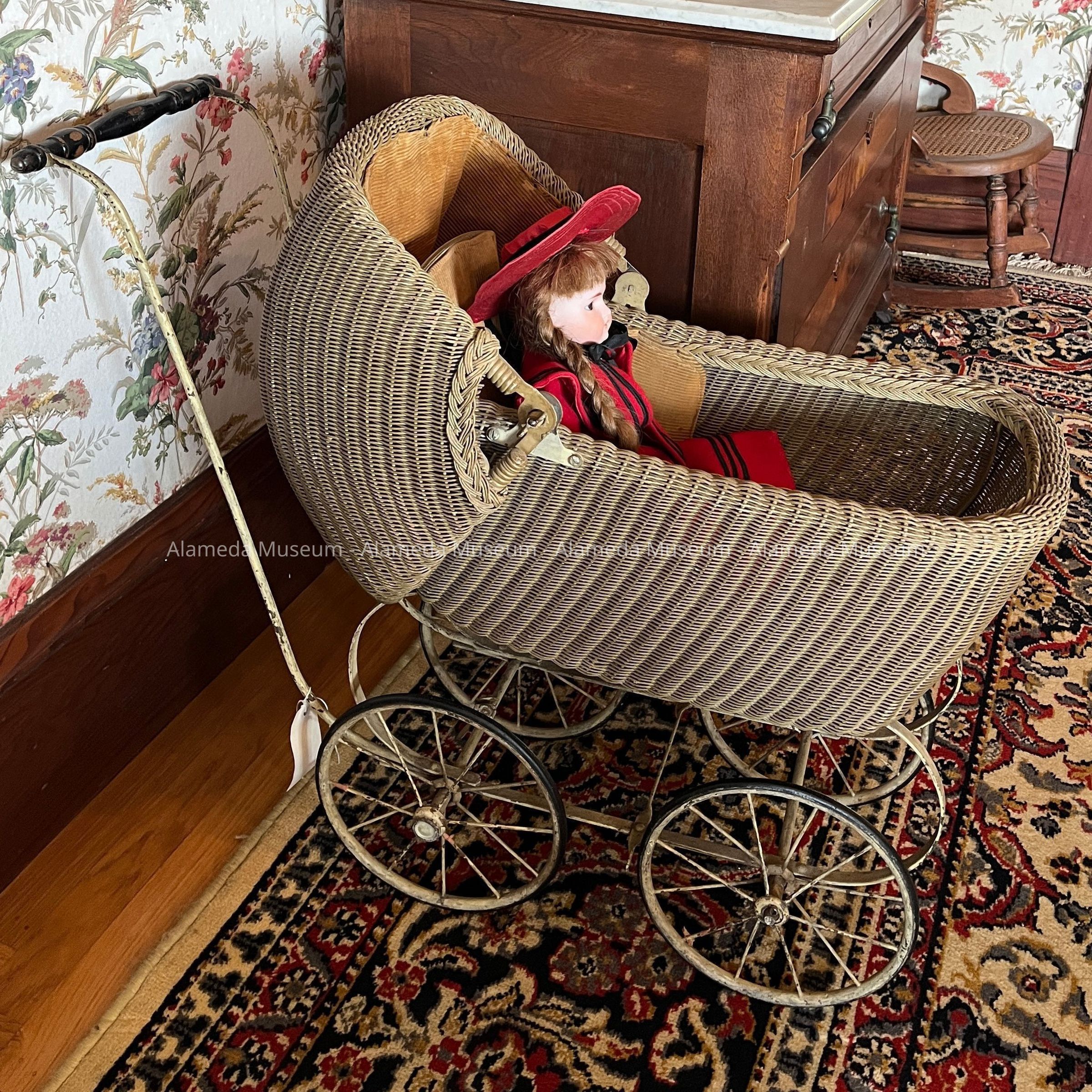 Doll carriage that belonged to the donor as a child, the daughter of George B. and Jean Musso. Mr. Musso owned and operated a shoe repair shop on Park St. in the 1930's. The donor, Lillian Musso Mulzan, attended local schools. Family has lived here since the 1920's.