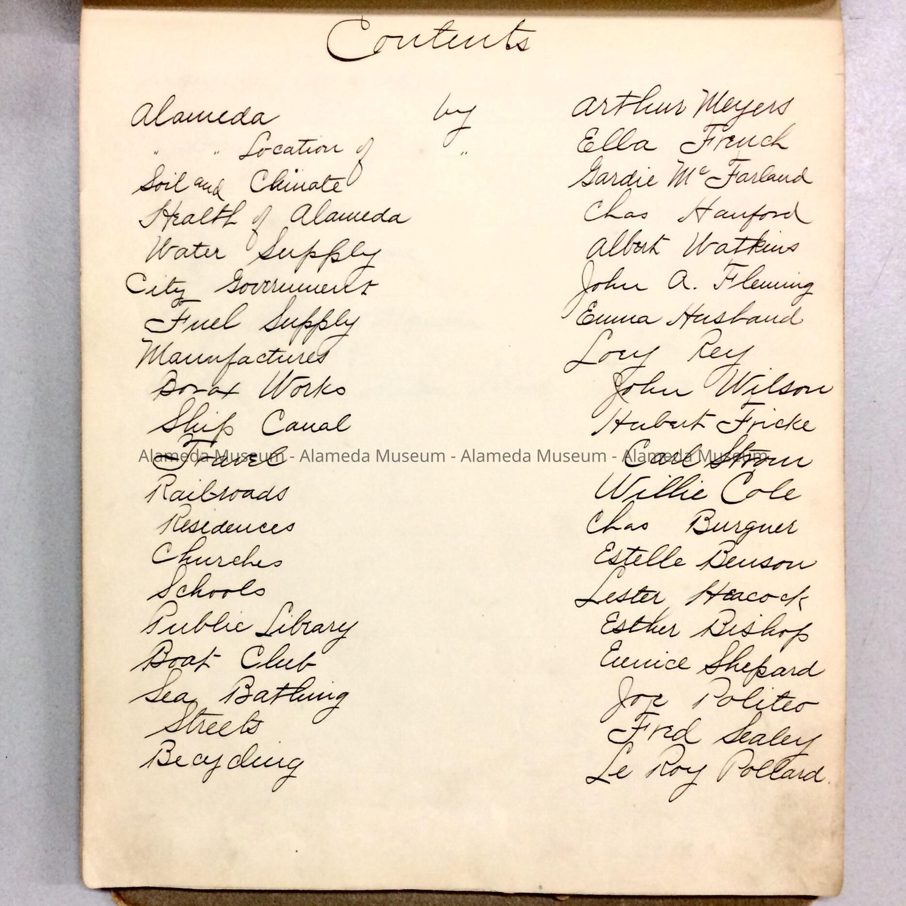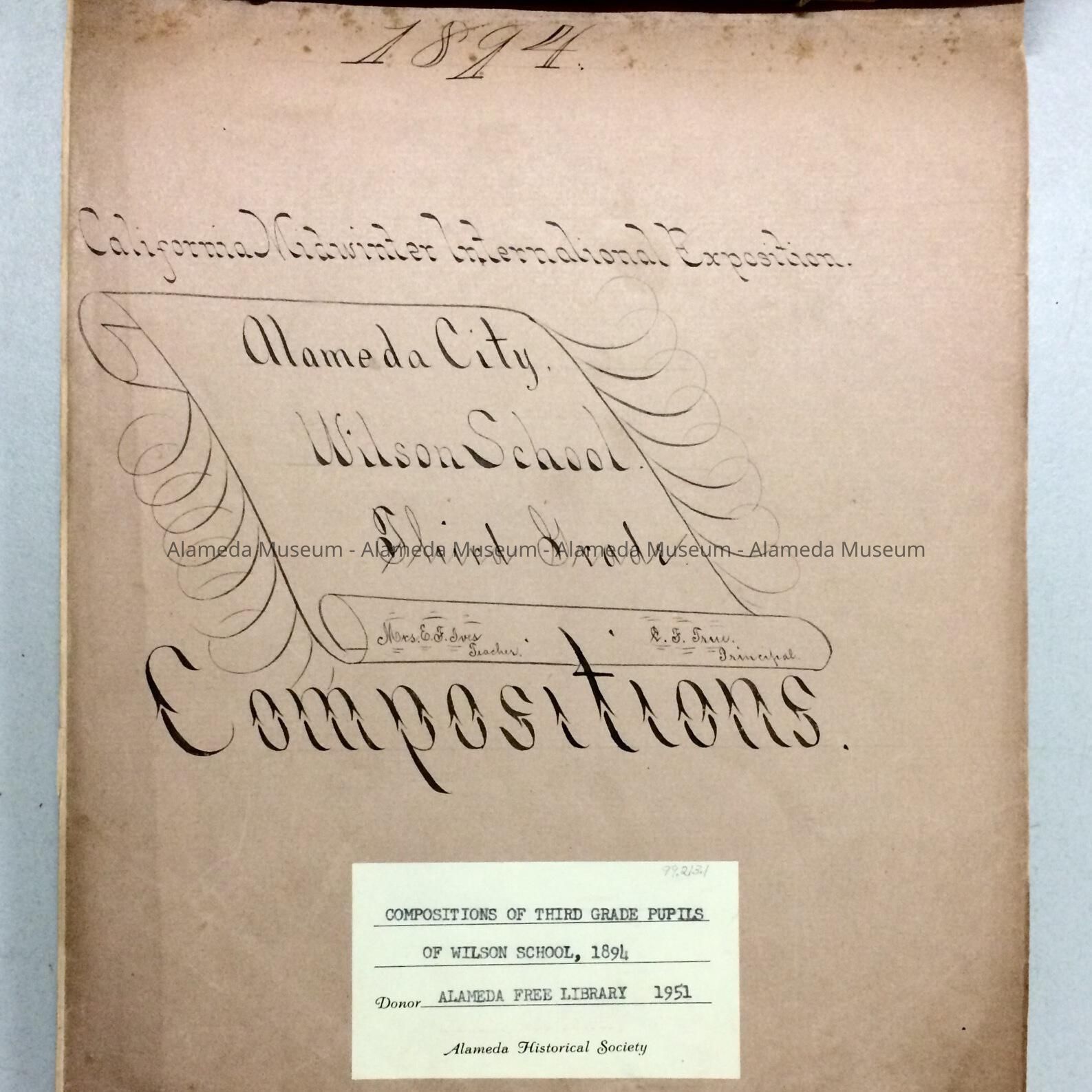 History: Hand written compositions by the students of the third grade at Wilson School. The name of the school was changed in 1911 to Lincoln School. The compositions are illustrated with actual photographs and lithographs from several sources. The collection of compositions were displayed to represent the Alameda City Schools at the California Mid Winter International Exposition held at Golden Gate Park, San Francisco, in 1894.