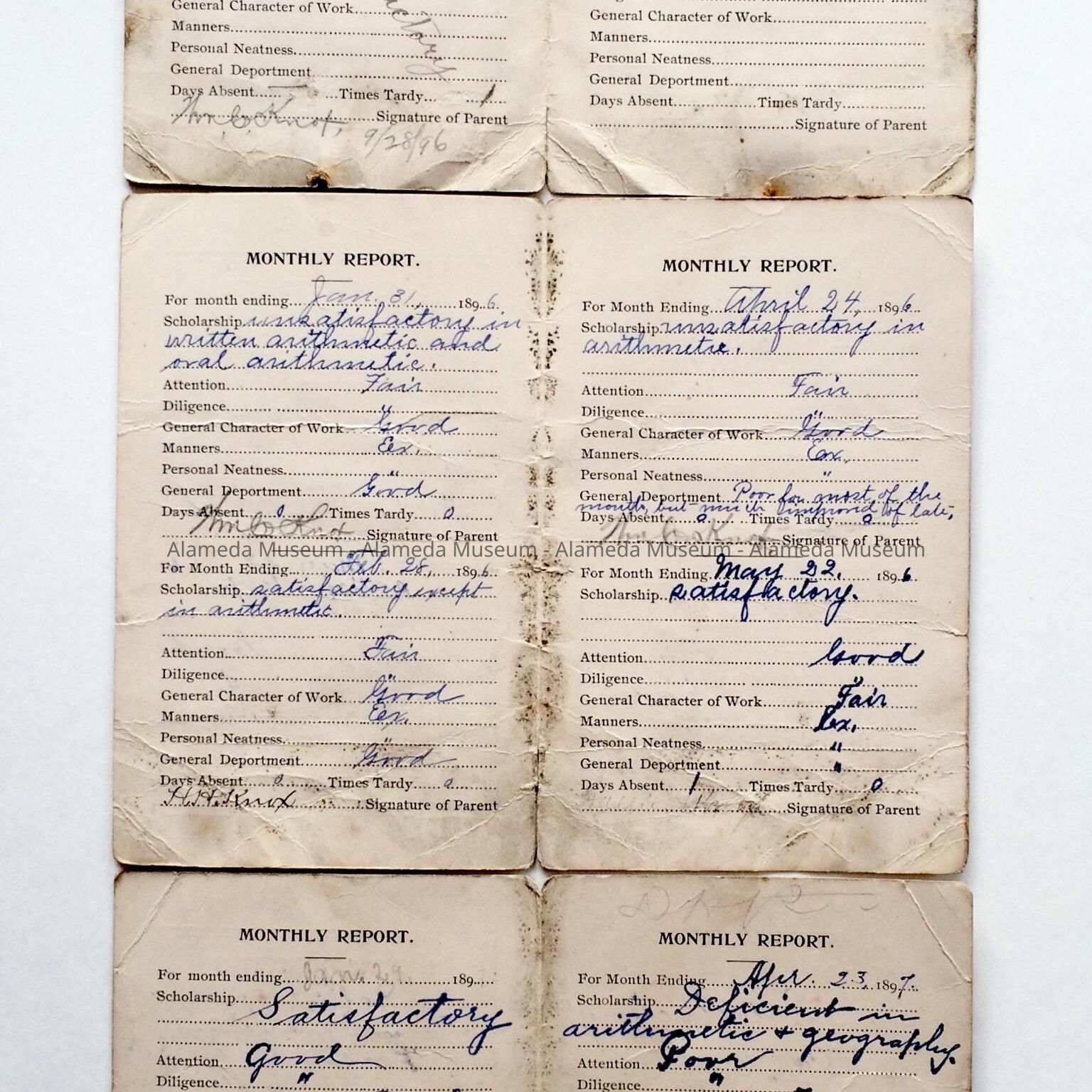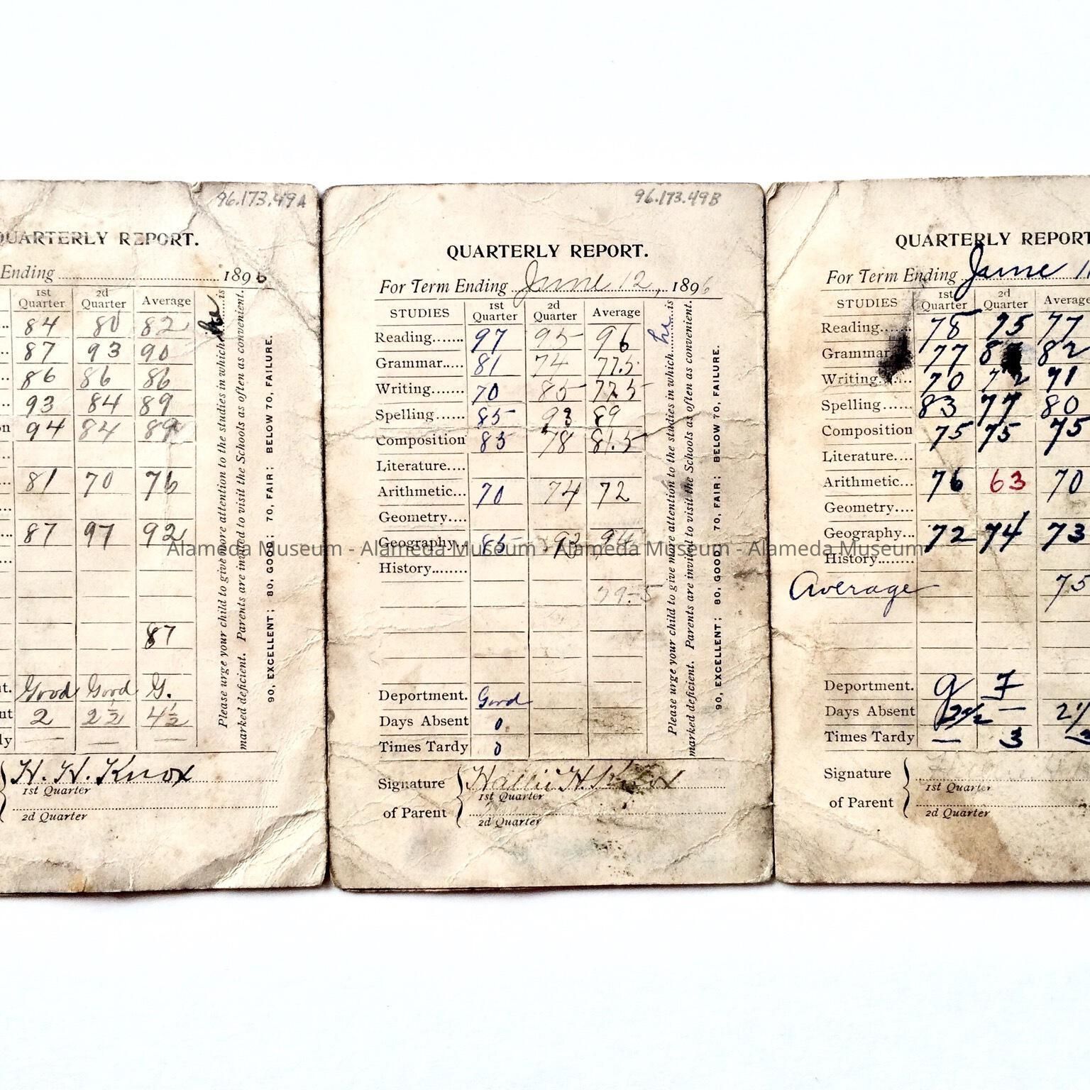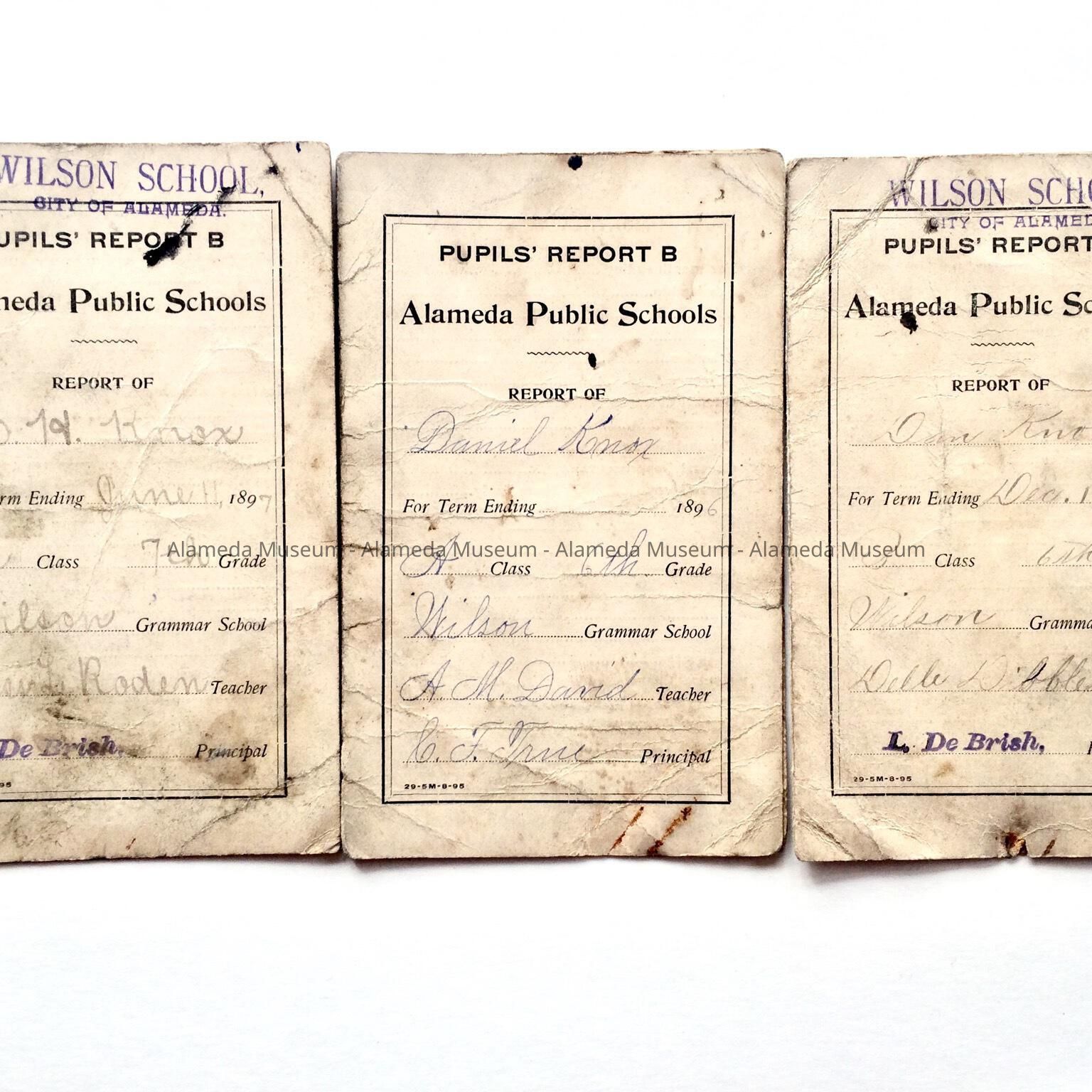 REPORT CARD ISSUED TO DANIEL KNOX, DECEMBER 1896 THROUGH JUNE 1897, WILSON SCHOOL, ALAMEDA. THE NAME "WILSON" WAS CHANGED TO "LINCOLN SCHOOL" IN 1911.