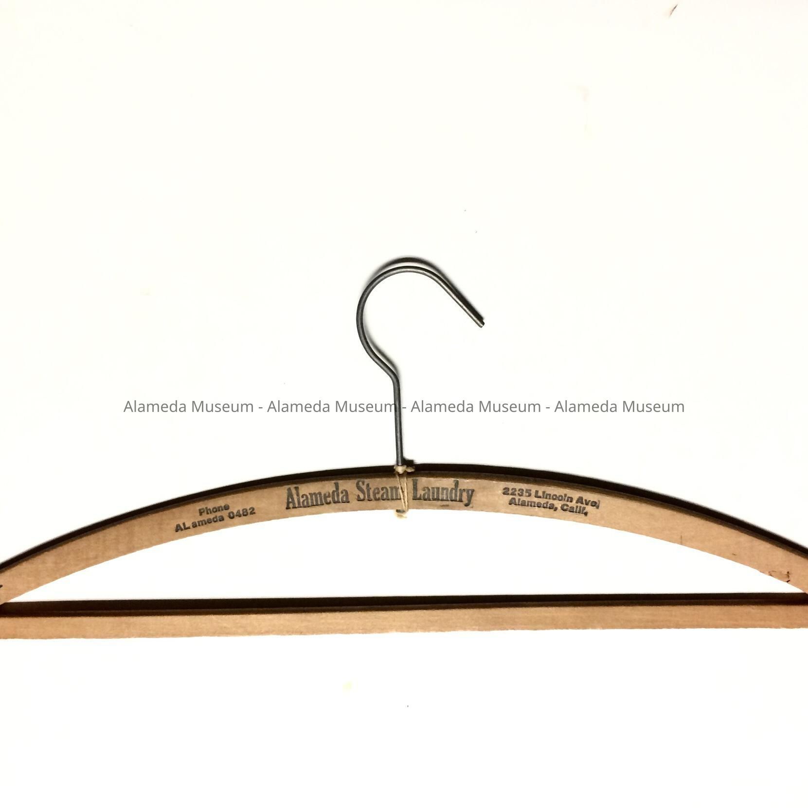 HISTORY OF OBJECT: A HANGER ADVERTISING THE ALAMEDA STEAM LAUNDRY, 2235 LINCOLN AVENUE, ALAMEDA; TELEPHONE AL-0482.