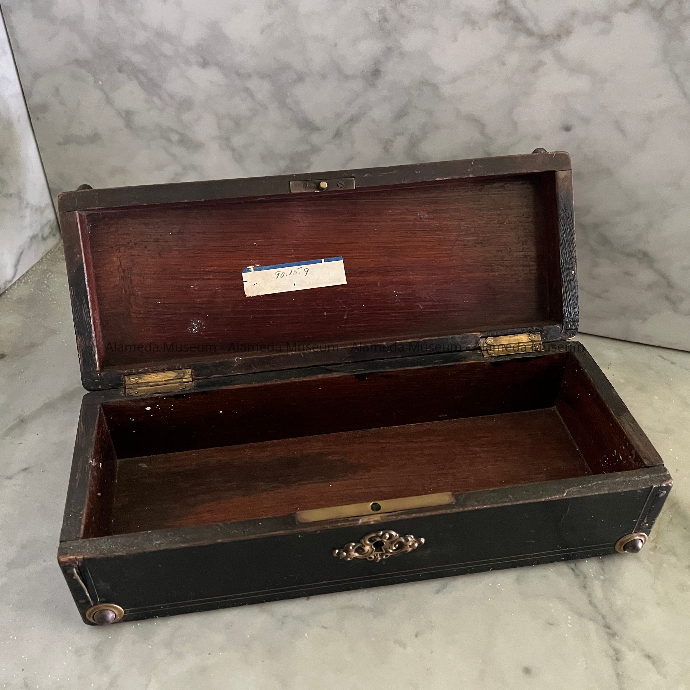 Glove box that belonged to Mrs. Thomas A. Thomson, great grandmother of the donor. Mr. & Mrs. Thomson were early residents of Alameda. They lived at 2114 Encinal Avenue.